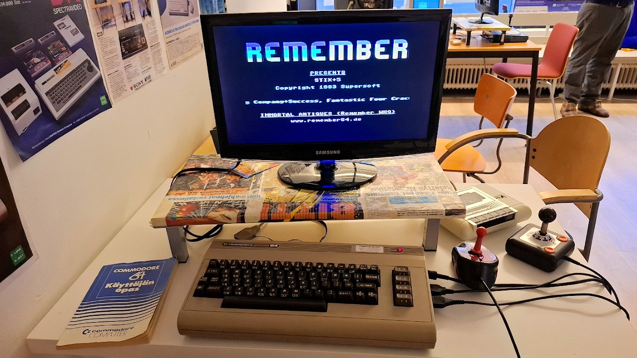 Kaikki paikalla olevat tietokoneet ovat kunnossa ja näyttelyvieraiden käytössä. Niinpä ennen kello yhtä alkoi jo olla joka koneella pelaajia. Muutama isä ja useampi ala- ja yläasteikäinen. Näyttelyn seinillä oli laitteisiin liittyviä mainoksia ja julisteita sekä pelejä aikakauden tunnelmaa lisäämässä. Paljon 8-bittisiä näyttelystä uupui. Jopa VIC-20, joka oli ensimmäinen yli miljoonan myydyn kotitietokoneen rajan ylittänyt kotitietokone. 8-bittisten kulta-aikoihin oli monia eri merkkisiä tietokoneita ja tee-se-itse -rakennussarjoja. Koneiden evoluutio on kuitenkin harventanut valmistajia kovalla kädellä. Näyttelyn laitteiden tuotemerkeistä taitaa kuluttajapuolella olla elossa enää Apple ja Canon.