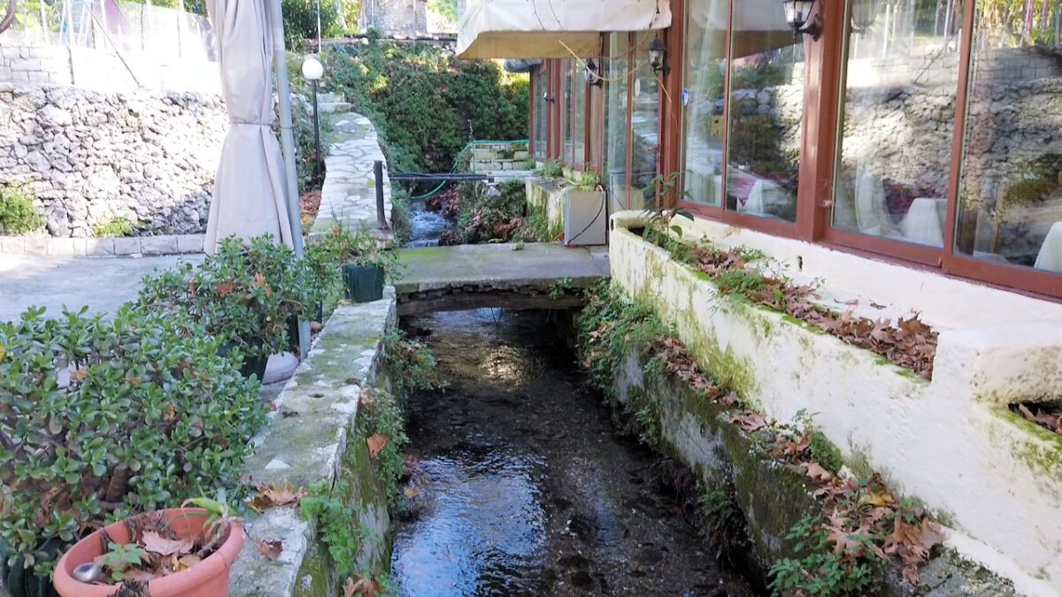 Satojen pienien putouksien väliin on rakennettu muutamia tavernoja. Palveluja siis löytyy putouksilta. Tosin talviaikaan niistä on auki yleensä vain kaksi. Green Oasis päätien varrella ja 100 metriä alempana puron varressa on Paleos Milos eli Vanha Mylly. Tavernoissa on erinomaista ruokaa enkä laittaisi niitä paremmuusjärjestykseen.