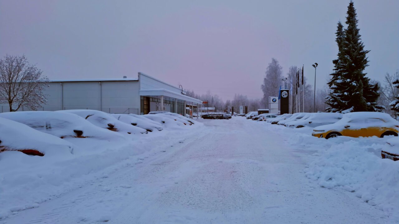 Autoliike oli 800 metrin kävelymatkan päässä Lappeenrannan asemalta. Pakkasta yhdeksän astetta ja pieni viima pisteli poskissa. Lunta oli tullut kohtalaisen paljon, mutta jalkakäytävät olivat pääosin aurattu. Hieman jouduin etsimään autoliikettä, sillä samalla tontilla oli useampi autoja kauppaava liike ja ainakin yksi katsastuskonttori.