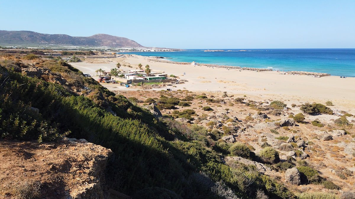 Ensiksi ajoimme varsinaiselle Falassarnan rannalle. Sitä kutsutaan nykyisin myös nimellä Big Beach. Yllättäen rannalle ei saanutkaan enää ajaa pysäköintiin vaan pysäköintialue oli noin 100m hiekkarannasta ja ehkä noin 300m merestä. Lisäksi rannalle oli melko jyrkkä lasku pysäköintipaikalta. Auton jättäminen ei enää ollut ilmaista kuten takavuosina vaan maksoi nyt 6€ päivä. Rannalla oli voimakas länsituuli, joten emme jääneet sinne.