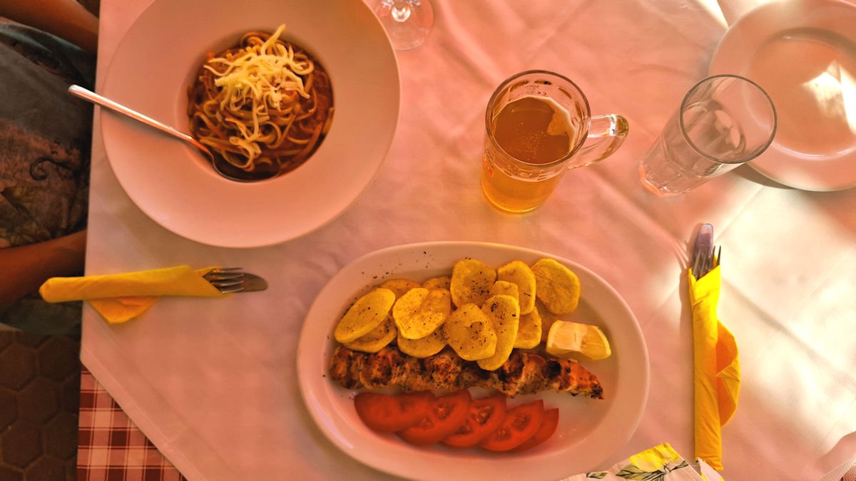 Tällä kertaa valikoitui ruokapaikaksi Me Noy & Krasi. Tilasimme spagetin ja kanasouvlakin. Juomina Charma tuoppi ja lasillinen valkoviiniä. Ruoka oli maittavaa, seura hyvää eikä annoskaan ollut liian iso. Edelliseen ruokailuun verrattuna hintataso oli lähes kaksinkertainen. Yhteensä 32,50€ eli tippien kanssa 35€. Laskun mukana tuli vesimelonia, viinirypäleitä ja kyytipojaksi rakia.