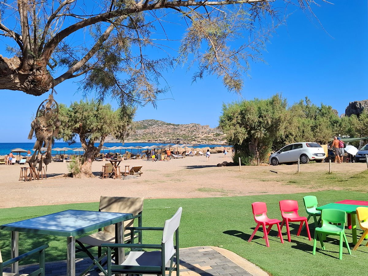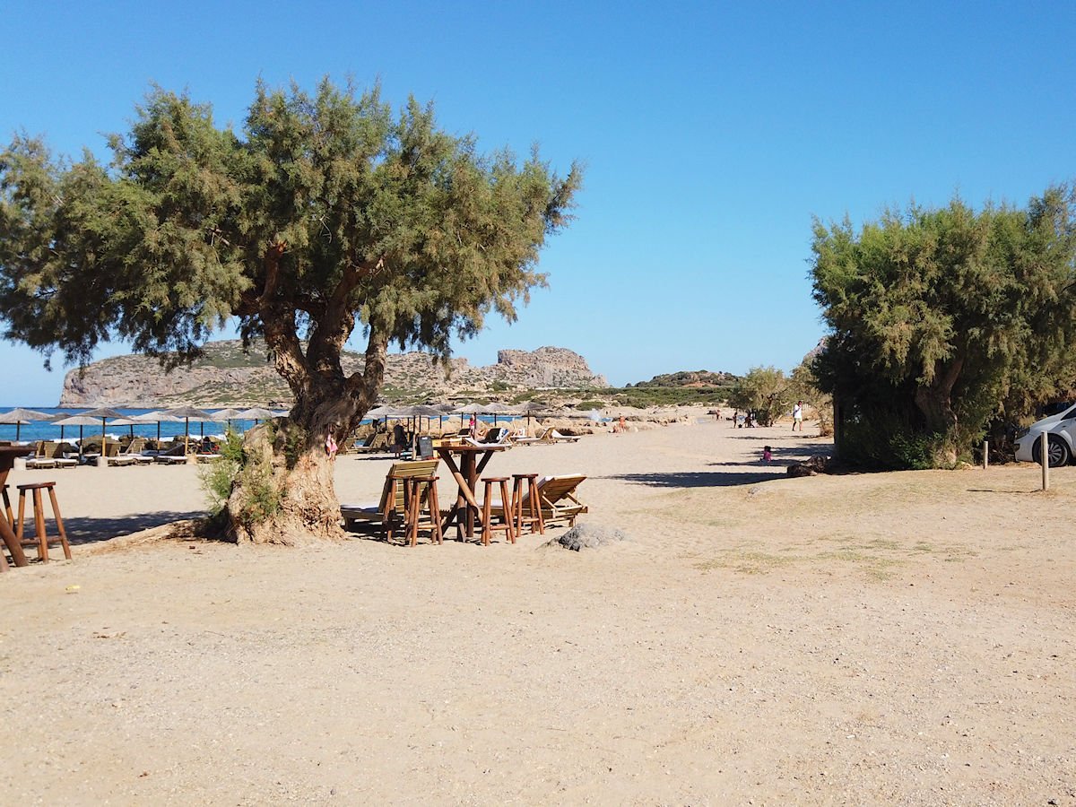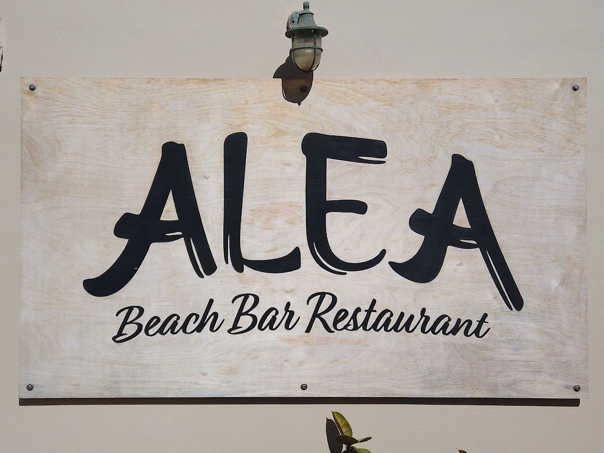 Vanhastaan muistin, että ennen Falassarnan arkeologista aluetta on ranta, jossa on suojainen laguuni. Vanha hippiranta. Tännekin oli tullut jo rantakahvila ja muita palveluja kuten aurinkovarjot ja -tuolit. Pysäköinti oli kuitenkin vielä ilmaista ja saapuessamme noin kello 10 oli myös rantakahvilan, Alea Beach barin ilmaisella parkkipaikalla hyvin tilaa. Ei tarvinnut kävellä alamäkeen eikä rannalla olon jälkeen kovassa helteessä ylämäkeen.