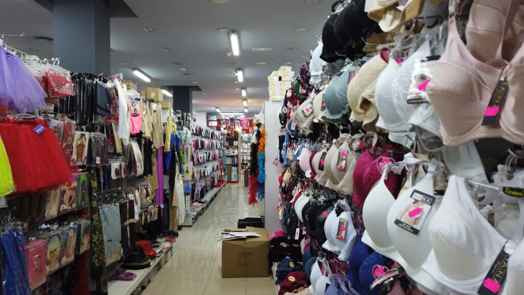 Alakerran käytävällä näytti olevan vaateliikkeitä.