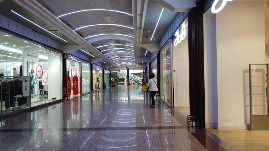 Taitaa olla välissä kampaamokin. Tämän jälkeen onkin Comercial Center Bellavista. Bellavistalla on tilava, kaksikerroksinen maksullinen pysäköintihalli, jossa oli  paljon vapaita parkkipaikkoja.