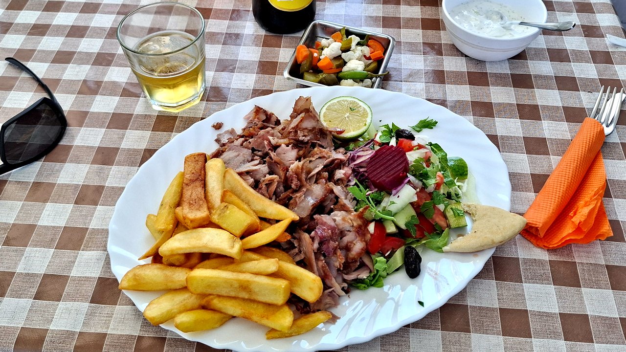 Päivälliseen valitsin lähes Metroa vastapäätä olevan Kebab-ravintolan. Annoksena tällä erää Kebab-plate ja juomana tietenkin paikallinen olut. Ruoka oli hyvää ja annos runsas. Ravintola on varsin vilkkaassa risteyksessä, joten taustamusiikkina soi autojen torvet ja kuskien huudot. Ravintolan hintatasosta voin sanoa: Hyvin edullinen.