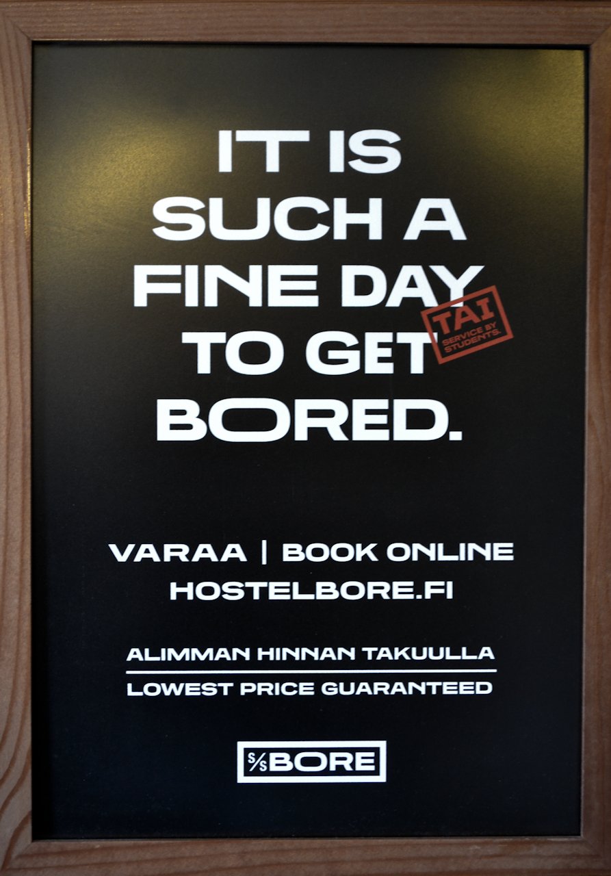S/S Bore on yllättävän viihtyisä majoituspaikka. Muutama mainitsemisen arvoinen asia kuitenkin tulee mieleen. S/S Boren sijainti Ruotsin lauttaliikenteen satamapaikan vieressä on sekä positiivinen että negatiivinen asia. Jos on lähdössä aamulautalla Maarianhaminaan tai Tukholmaan, niin hostelli on hyvä paikka yöpyä. Toisaalta Viking Linen aamulautta tulee 7.35 ja siitä alkaa rekkaralli heti S/S Boren partaan vieressä. Se saattaa häiritä herkkäunista. Tässä vaiheessa kautta oli laivan ja alueen fasiliteetit puutteelliset. Kun sisäänkirjautuminen tapahtuu tunti lounasajan jälkeen ei laivalla ole juuri mitään syömistä. Toki vastaanotossa oli kylmäkaappi, josta sai virvokkeita, vettä ja jotain pientä purtavaa.