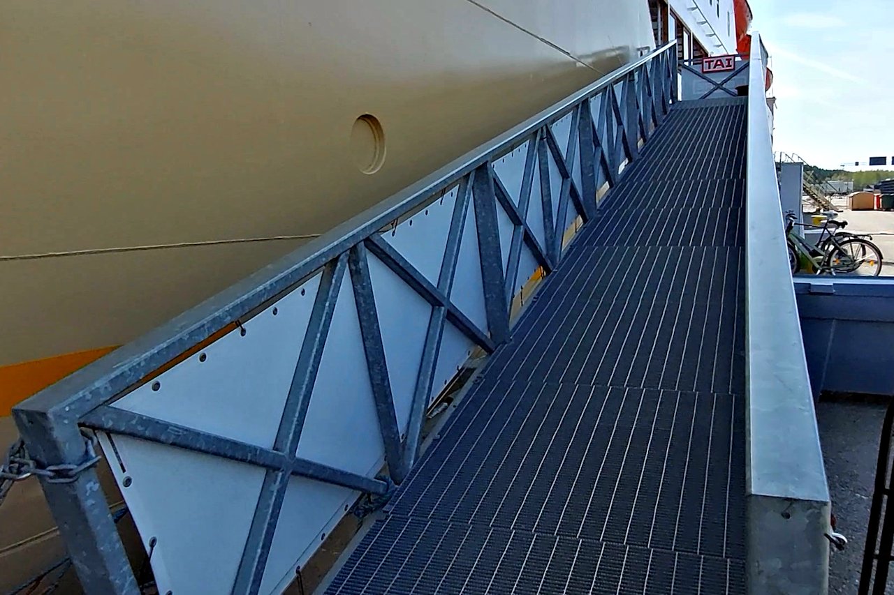 Pysäköintipaikalta on lyhimmillään kävelymatkaa 125 metriä laivalle. Lähimmältä linja-autopysäkiltä vastaavaa matkaa kertyy 325 metriä.