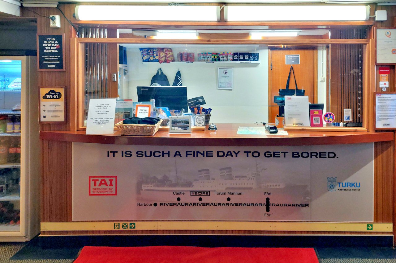 Toukokuun puolessa välissä Cafe Navigarea ja saunoja remontoitiin, joten niihin en päässyt tutustumaan. Cafe Navigare avautuu viikonlopuksi 25 -26.5.2024 ja koko kesäkaudeksi 31.5. Hostellivieraita varten laivasta löytyivät tavarasäilytys, pyykinpesumahdollisuus sekä kohtuu nopea langaton internet.