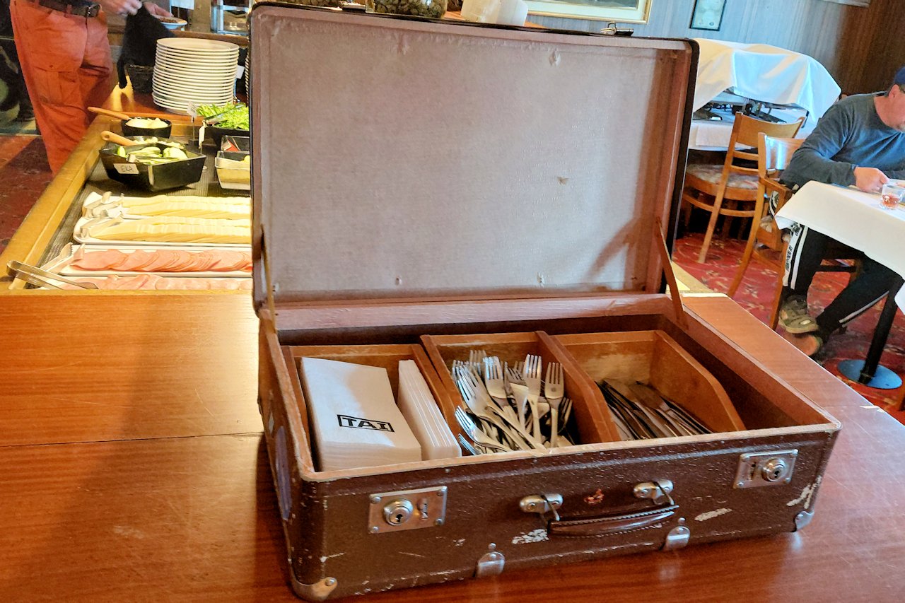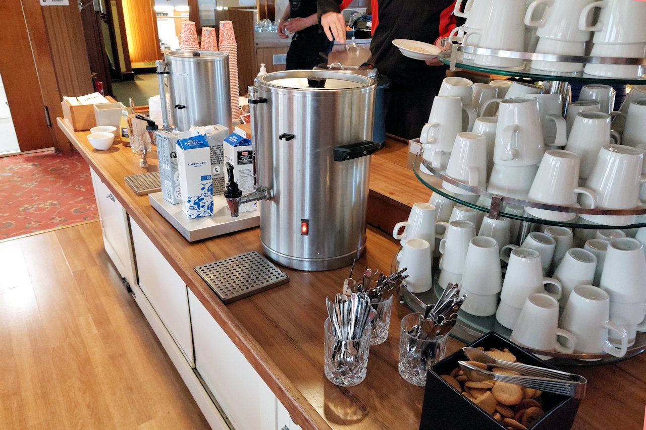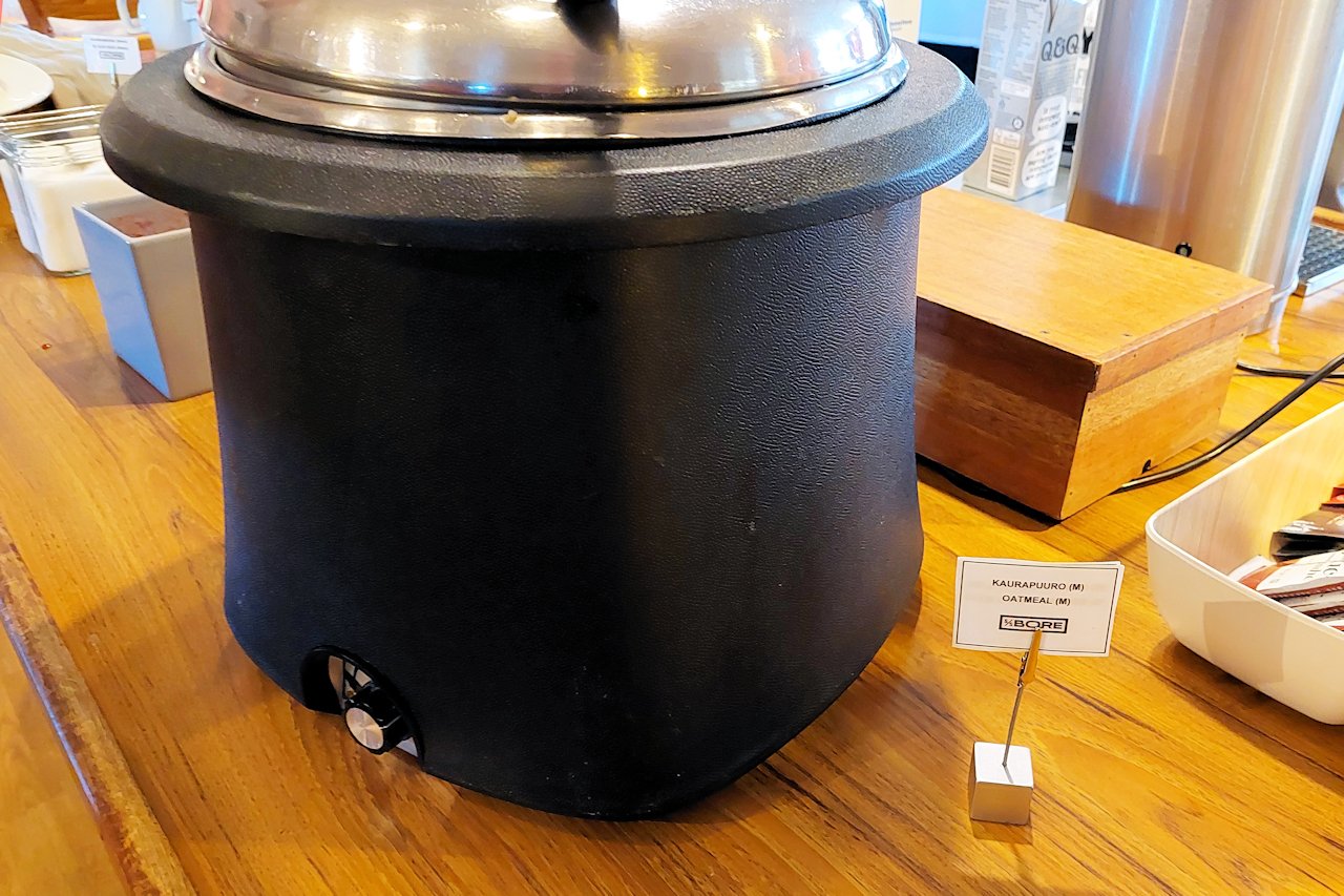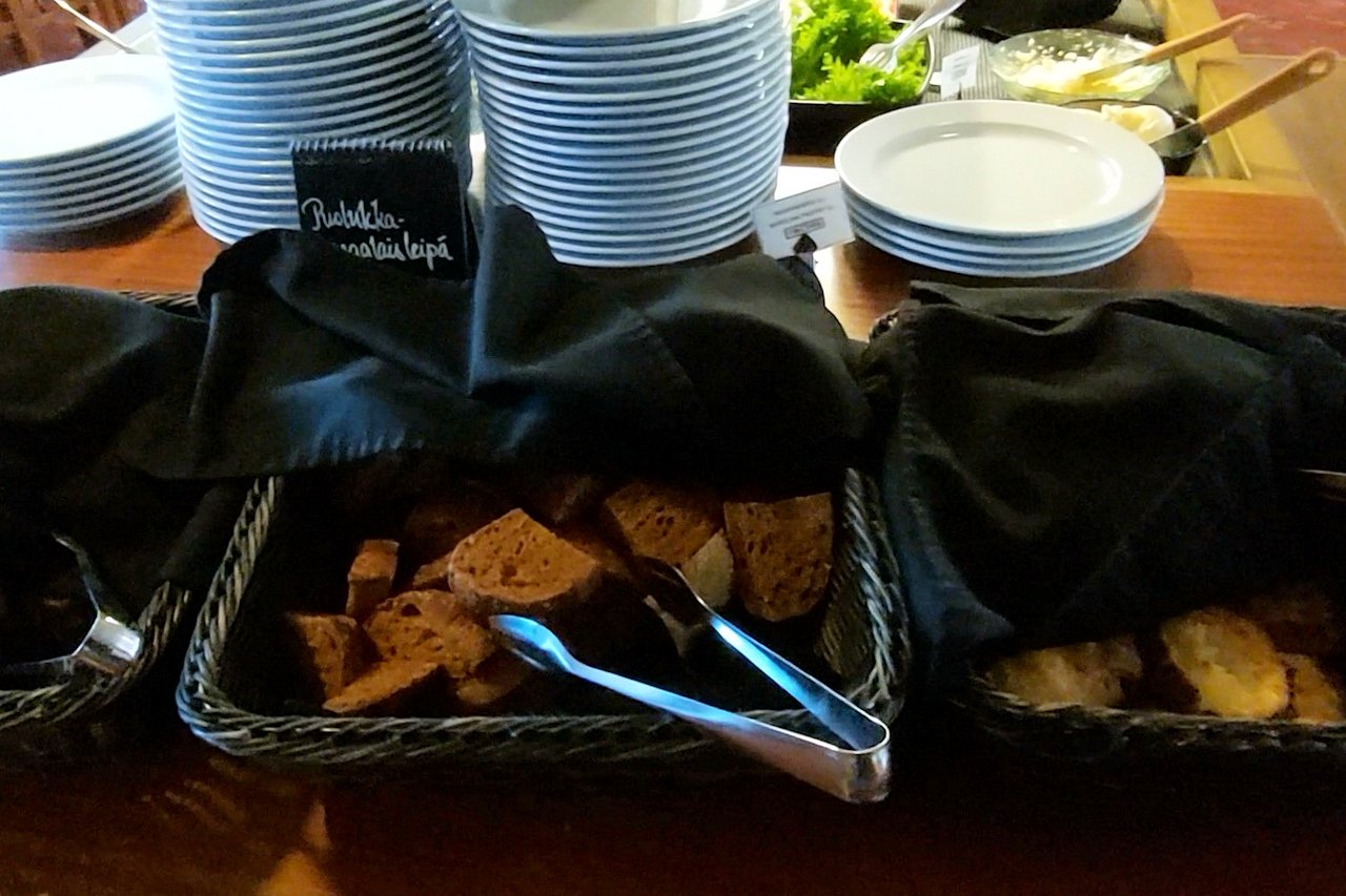 Aamiainen tarjotiin kello 6.30 alkaen. Yllättävän paljon vieraita oli jo syömässä heti aamiaisen alettua. Suurin osa allekirjoittaneen ikäluokkaa. Aamupala oli monipuolinen ja vaihtoehtoja oli sopivasti suomalaiseen makuun. Toki olisin kaivannut hieman vaaleampaa leipää, mutta korvasin puutteen karjalanpiirakoilla. Pelkkä tumma- ja puolukkaleipä valikoimana tuskin täyttää eurooppalaisten vieraiden odotuksia. Arkipäivisin aamupala on katettuna kello 6.30 – 10.00 ja viikonloppuna 6.30 – 11.00.