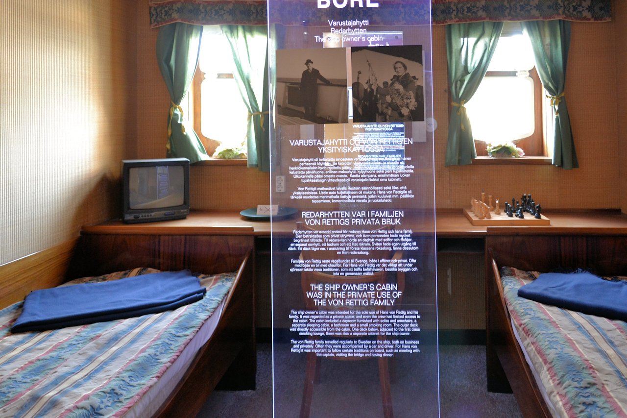 Aloitimme museoon tutustumisen S/S Boresta. Laivan museo sijaitsee lähinnä ylimmillä kansilla. Reitillä pääsee tutustumaan myös komentosiltaan ja näkee miten laivaa ohjataan.