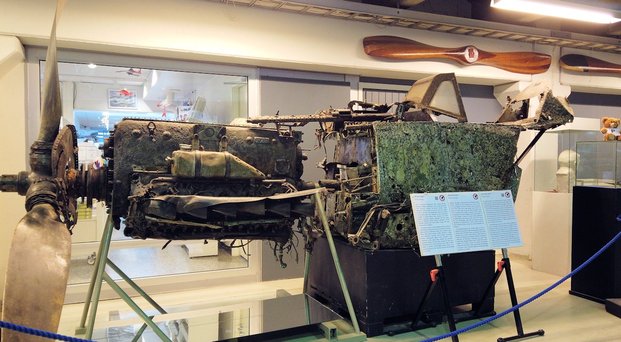 Halliin tullessa on edessä Cauldron C.60 lentokone ja vasemmalla Messerschmitt BF 109-G2:n merestä nostettu eturunko. Jälkimmäinen oli uponnut onnettomien sattumuksien summana ilmamaaliharjoituksissa. Hallissa on paljon mielenkiintoista nähtävää aina deaktivoituihin pommeihin asti. Uusimpana koneena hallissa on Saab 35BS Draken, jonka ohjaamoonkin pääsee kurkkaamaan.