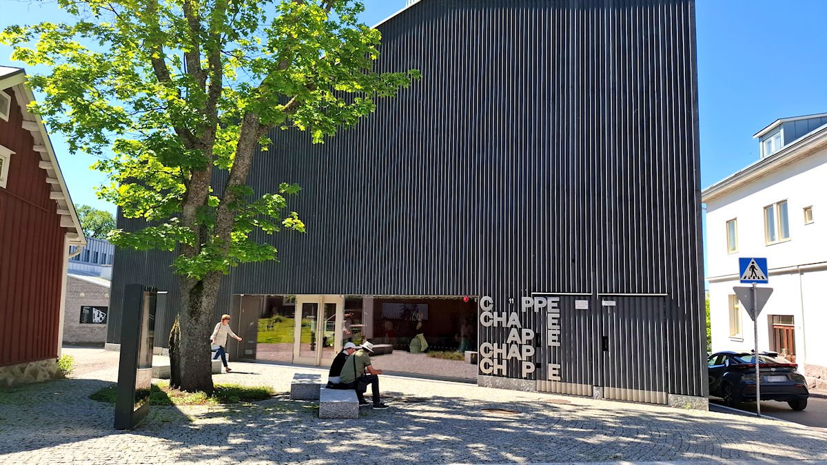 Meitä kiinnosti vanhan keskustan lisäksi muutama taidegalleria. Ensiksi kävimme Chappessa. Se sijaitsee Kaivokadulla heti Kustaa Vaasankadun risteyksessä. Chappe – Taiteen talo avattiin huhtikuussa 2023. Mikäli haluaa etukäteen tutustua katunäkymään niin rakennus ei vielä näy Google Mapsin katukuvissa. Monissa blogeissa ja muissa yhteyksissä olin kuullut, että galleria on rakennuksena upea ja istuu hyvin maisemaan. No asiasta voidaan olla monta mieltä. Miten muita ympärillä olevia rakennuksia selvästi korkeampi ja massiivinen moderni rakennus istuu kulttuurikortteliin vanhojen museorakennusten yhteyteen? Rakennus olisi selkeästi vaatinut suuremman ja vehreämmän, puistomaisen tilan. Nyt näyttää siltä että Harkonnien avaruusalus on töpsähtänyt keskelle 1950 -luvun pikkukylää. Parempi paikka olisi löytynyt vaikkapa Kipparipuistosta läheltä Etelälahden satamaa.