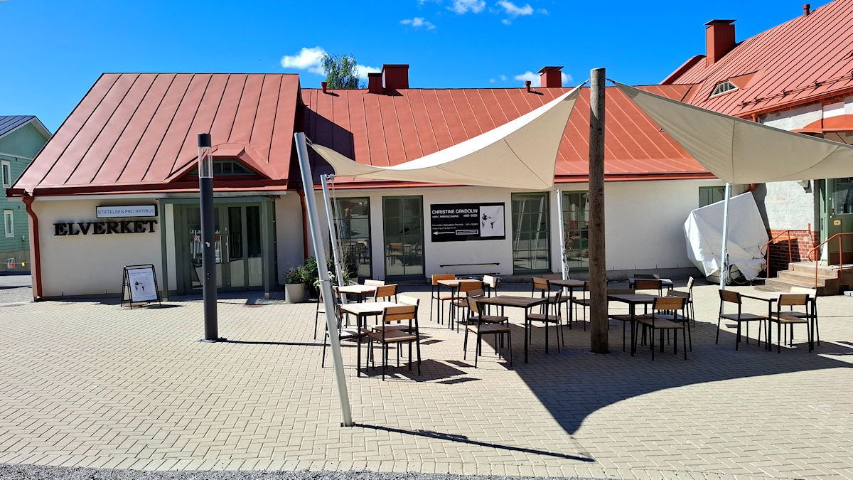 Elverketissä on näytteillä tällä hetkellä Christine Candolinin monimateriaalisia installaatioita ja muita teoksia 30 vuoden ajalta. Näyttely ilmentää, miten taiteilija on koko uransa ajan hahmottanut teoksensa mielen ja materian vuoropuheluna. Elverketin edessä oli pop-up kahvion pöytiä ja tuoleja käynnillämme näyttelyssä. Paikalla on ilmeisesti ajoittain kahvikärryt josta saa ostaa virvokkeita.