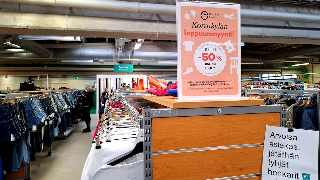 Kierrätyskeskuksen Vantaan Koivukylän 3000m2 suurmyymälän loppuunmyynti on alkanut 2.2.2026 ja jatkuu aina 15.2. asti. Loppuunmyynnin päätteeksi myymälä suljetaan lopullisesti. Koivukylä on ollut asiakkaiden keskuudessa erittäin pidetty secondhand-ostosparatiisi valikoimansa ja keskeisen sijaintinsa ansiosta. Esimerkiksi opiskelija-asuntoja on lähistöllä merkittävä määrä.