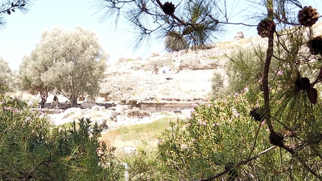 Gortyn oli pienoinen pettymys. Yleisölle avoin alue oli yllättävän pieni. Ilmeisesti aika laajasti on vielä kaivamatta alueella. Vähän maastoa sillä silmällä katsoen siellä on vielä aika paljon kasvipeitteen alla raunioita piilossa. Suorakaiteen muotoisia penkereita ja irtolohkareita. Hieman sama tilanne siis kuin Maliassa ja Knossoksessa. Kaikkea ei olla vielä ehditty kaivaa. Jokiuoman toisella puolella näytti arkeologit kaivavan teatteria esille.