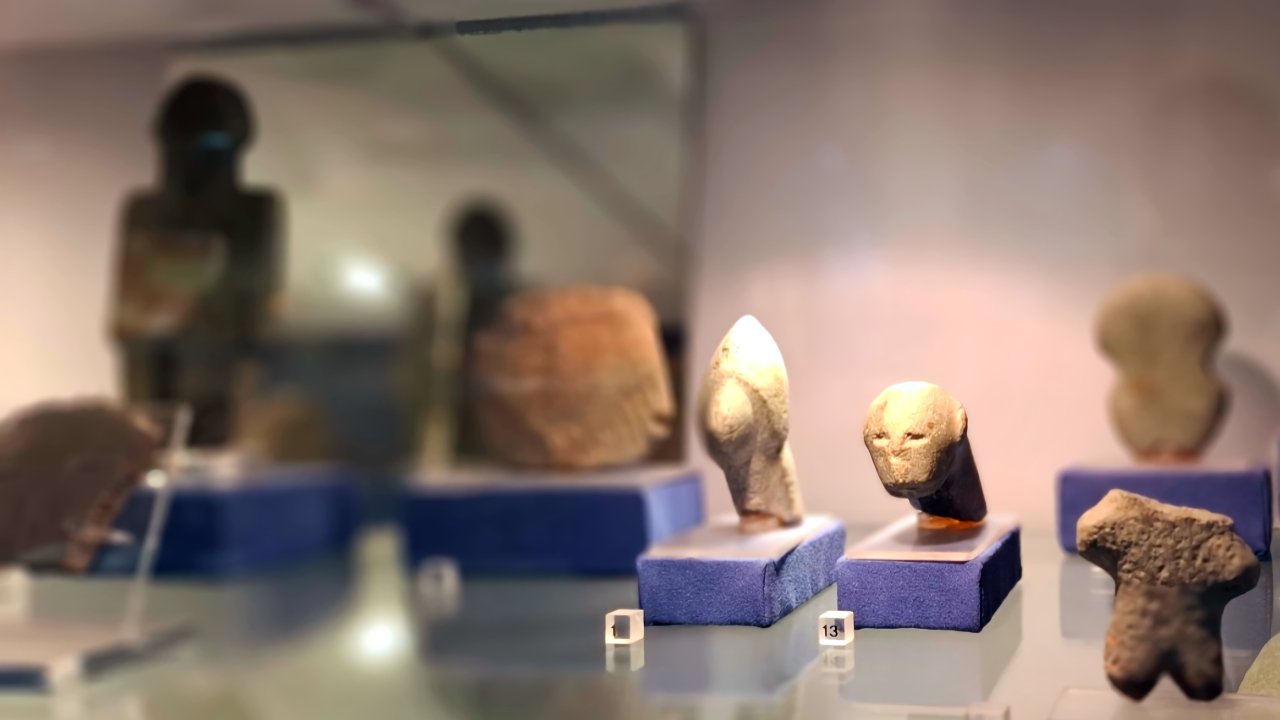 Ensimmäisessä salissa esitellään Kyproksen esihistoriallista ja kalkoliittista aikaa. Tältä ajalta, noin 3000 eaa on oudon näköisiä pieniä patsaita, jotka muistuttavat kädet levällään ristiasennossa olevia ihmisiä.