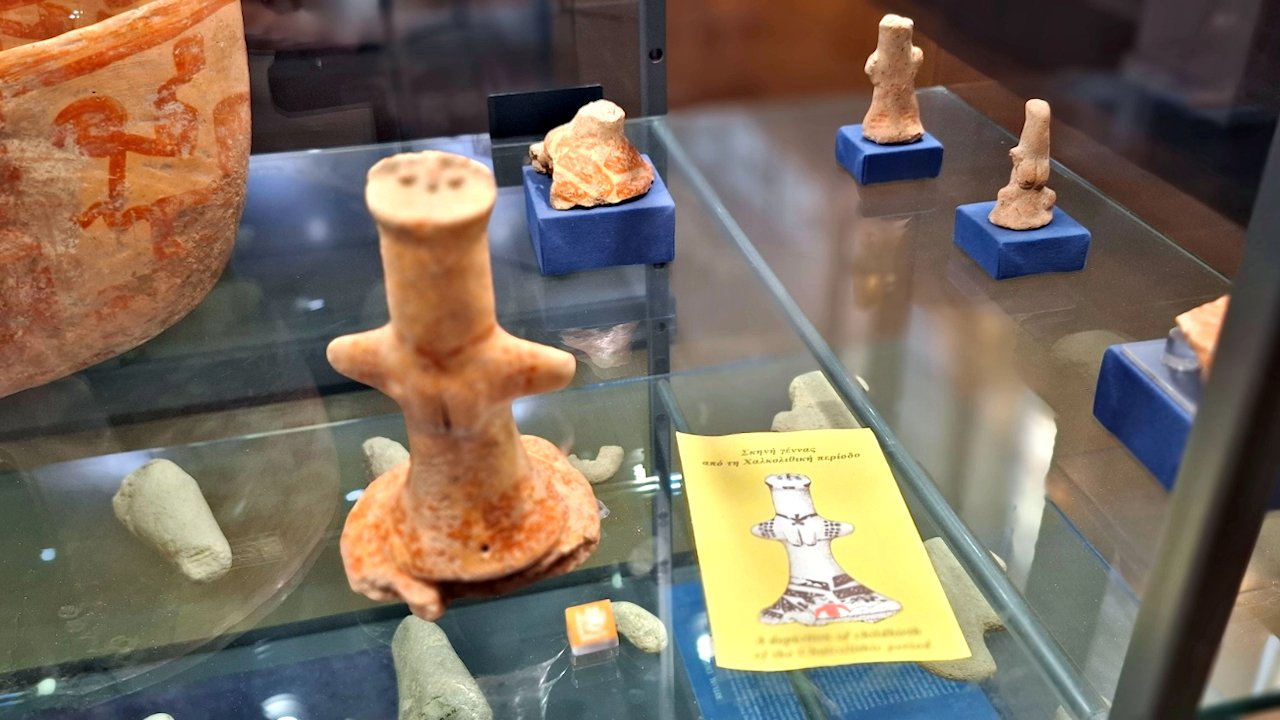 Ensimmäisessä salissa esitellään Kyproksen esihistoriallista ja kalkoliittista aikaa. Tältä ajalta, noin 3000 eaa on oudon näköisiä pieniä patsaita, jotka muistuttavat kädet levällään ristiasennossa olevia ihmisiä.