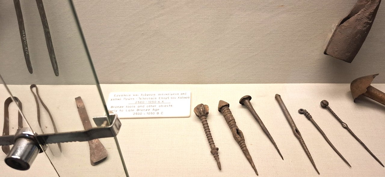 Kupari- ja pronssiesineitä on paljon. Onhan Kyproksen saari saanut nimensä juuri kuparista. Mielenkiintoisia olivat myös kultaesineet sekä kirjoituksen kehittymisestä kertova salit. Oli todella antoisaa kulkea museon saleissa ja nähdä miten paljon saarella on kulttuuri ja taide kehittynyt kulloisenkin vallassa olevan valloittajan mukaan. Vaikutteita on myös tullut kaupankäynnin kautta. Olihan Kypros aikonaan yksi kauppareittien solmukohta.