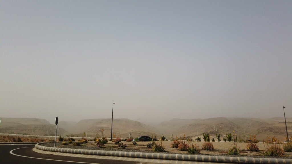 Kanarian saarilla on viikonlopun aikana vaikuttanut La Calima. Calima syntyy kun ilmavirta kääntyy kuljettamaan lämmintä ilmaa Saharan suunnalta. Sen mukana tuleva hiekkapöly on heikentää näkyvyyttä ja hengitysilmaa. Eilen oli, virallisen ilmoituksen mukaan, ollut Gran Kanarialla näkyvyys minimissään 1300 metriä. Varsinaisesta hiekkamyrskystä ei voi puhua, mutta hiekkaa on kohtuullisesti ilmassa. Sitä lämmintä ilmaa odottelen. Viime yönä oli huimat 14 astetta ja päivälläkin virallisesti vain 20. Tosin rannan tolpat väittivät lämmön olevan 25 astetta.