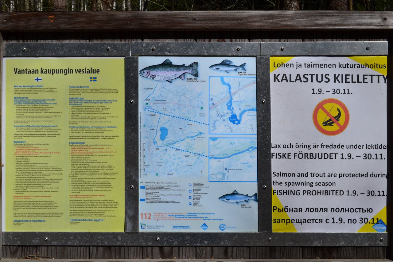 Helsingin puoleinen luontopolku ei ala heti sillalta. Rannan suojelu on, kylttien mukaan, koko kosken alueella. Kalastus on kielletty 1.9 – 30.11. jolloin myös lohi ja taimen ovat rauhoitettuja. Kahlaaminen on kielletty koski- ja virtapaikoissa 1.9 – 31.5. välisellä ajalla.