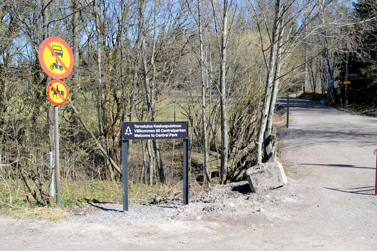 Nousin luontopolulta loivaa mäkeä Kuninkaantammentielle. Keskuspuiston alueella on tien varressa erikseen muun muassa Haltialanmetsän 137 hehtaarin luonnonsuojelualue. Sitä koskee samat rajoitukset kuin Vantaanjoen rantaa, joskin joillakin alueilla pyöräily on sallittu. Sallitut reitit on merkitty merkein. Palaan myöhemmin Haltialanmetsän samoiluun. Helsingin keskuspuistossa on vielä paljon nähtävää ja koettavaa!