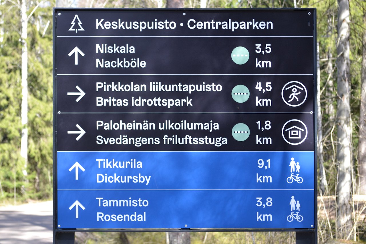 Etäisyyksiä Pitkäkosken majan kohdalla Keskuspuistossa