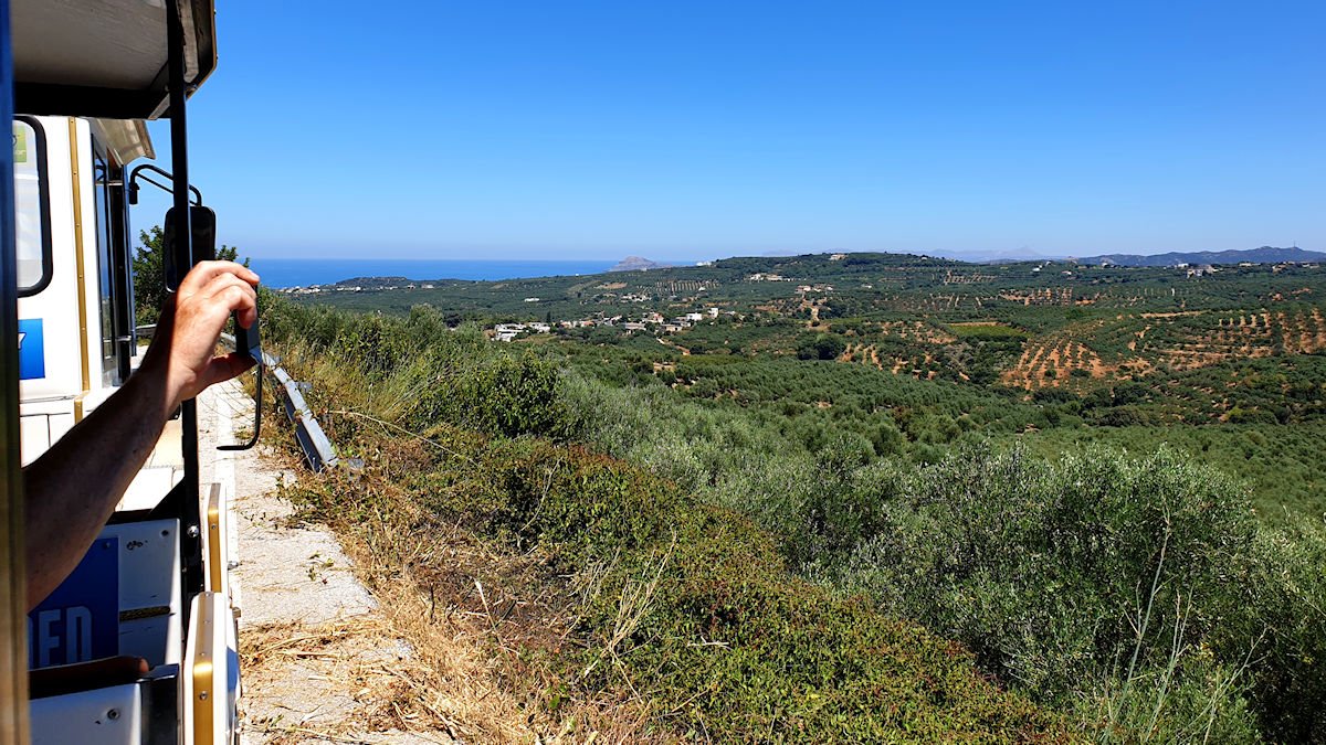 Dereksestä pikku junamme palasi takaisin Malemeen. Tosin hieman eri reittiä. Maisemat olivat edelleen mukavia. Länsi-Kreeta on maisemaltaan vihreämpi kuin Itä-Kreeta. Se on jotenkin mukavampaa näin metsäiseen maahan tottuneelle. Matkan varrelle sattui myös hieman jylhempiäkin maisemia mutta ei kuitenkaan rotkoja.