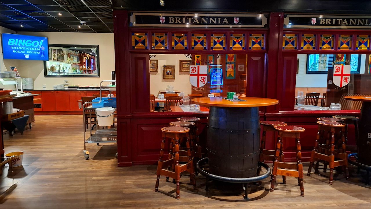 Olemme asuneet Kaarelan, Kannelmäen ja Haagan alueilla vuosikymmeniä, mutta en ollut koskaan käynyt Britanniassa. Päätimme vihdoin käydä tutustumassa pubin nykyisiin tiloihin ja arkilounaaseen. Käyntipäivänä olimme kiinni ovenkahvassa minuuttia ennen puolta yhtätoista. Hetken kuluttua henkilökunta päästi meidät sisälle. Lounas tarjoillaan arkipäivisin 10.30 – 14.00 välisenä aikana. Britanniassa saavat eläkeläiset ja opiskelijat lounaan 12,70€ hintaan. Muille hinta on 13,70€. Hieman edullisempi keittolounas on opiskelijoille sekä eläkeläisille 10,70€ ja muille 11,70€