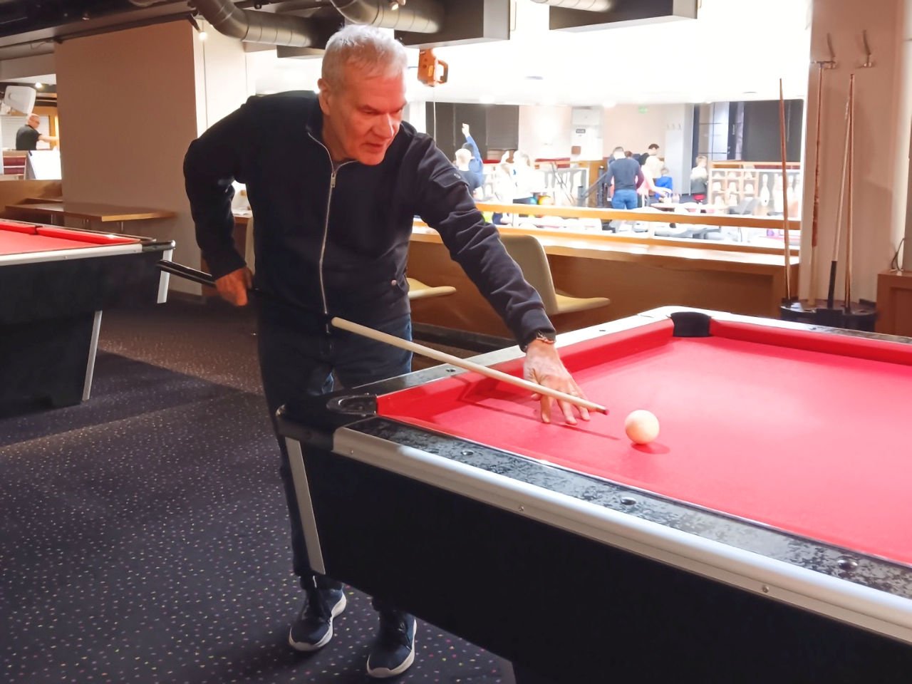 Kellarikerroksessa pääsimme pelaamaan pari kierrosta biljardia. Keilaratojen vieressä oli kaksi biljardipöytää, joita sai vuokrata nimelliseen hintaan mikäli jompikumpi pöydistä oli vapaana. Välineet olivat tarjolla hotellin puolesta. Pallot ja liitu lunastettiin hallin myyntitiskiltä.