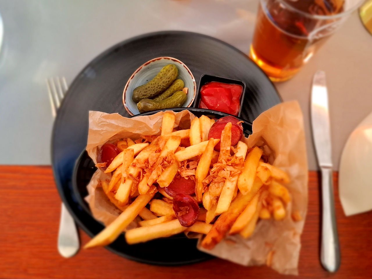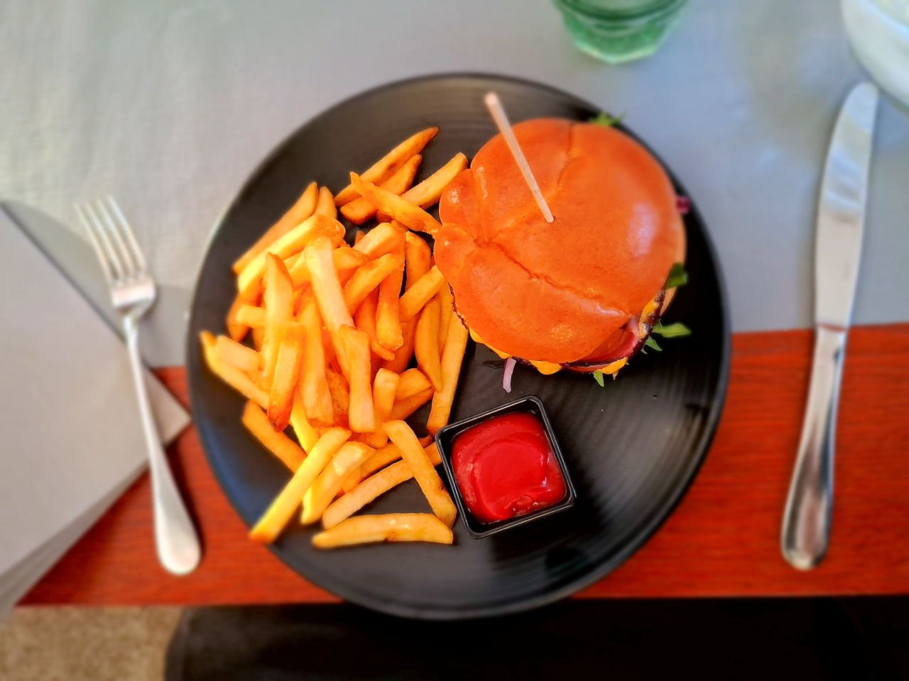 Päivällisen nautimme A la Carte ravintola Aallossa. Se on sunnuntaista torstaihin kello 12:sta 22:een ja perjataisin ja lauantaisin 12:sta kello 23:een. Meille ateriaksi valikoitui Makkaraperunat ja Tuhtiburger. Olimmehan syöneet jo matkalla Kuortaneelle.