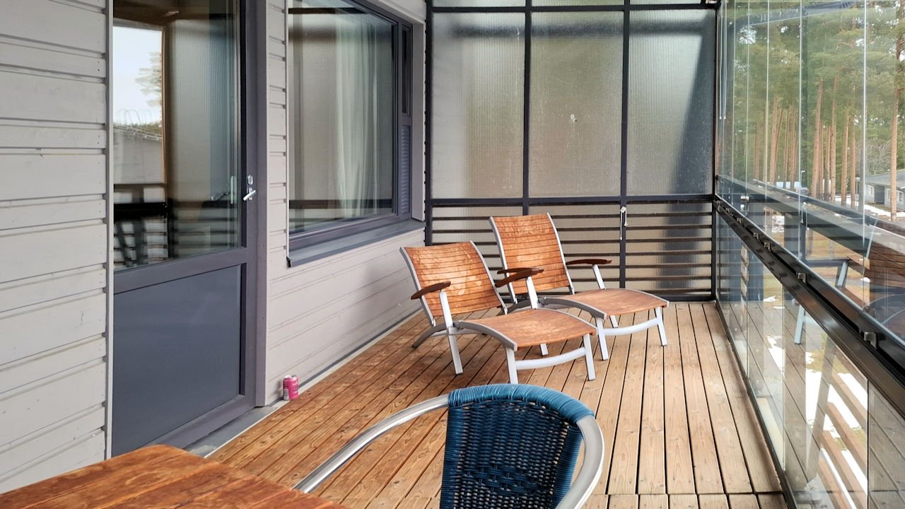 Huone oli pääosin siisti. Siivoojalta oli jäänyt saunan löylyvesikiulusta vedet poistamatta. Kaadoin vedet pois ja pesin astian. Myös yhdessä makuuhuoneen laatikossa oli pieni määrä jotain valkoista jauhetta ja parvekkeella puolityhjä lonkerotölkki.