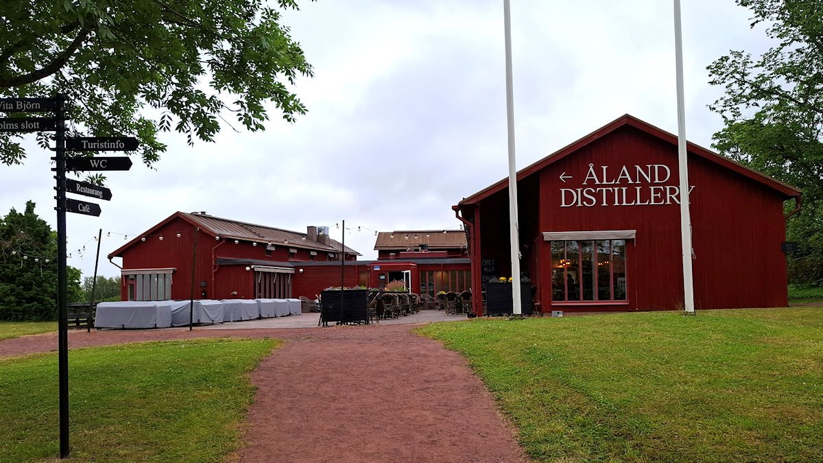 Linnassa ja Vita Björnissä ei ole palveluita, mutta lähellä oleva Åland Distillery tarjoaa kahvia ja pizzaa. Toki myös omien tuotteittensa juomamaistiaisia. Mehän suunnistimme tietenkin tislaamoon kahvitauolle. Hyvin maistui kahvin kannsa myös Ahvenanmaan pannukakku. Kahvio on auki kyltin mukaan joka päivä kello 10-17.
