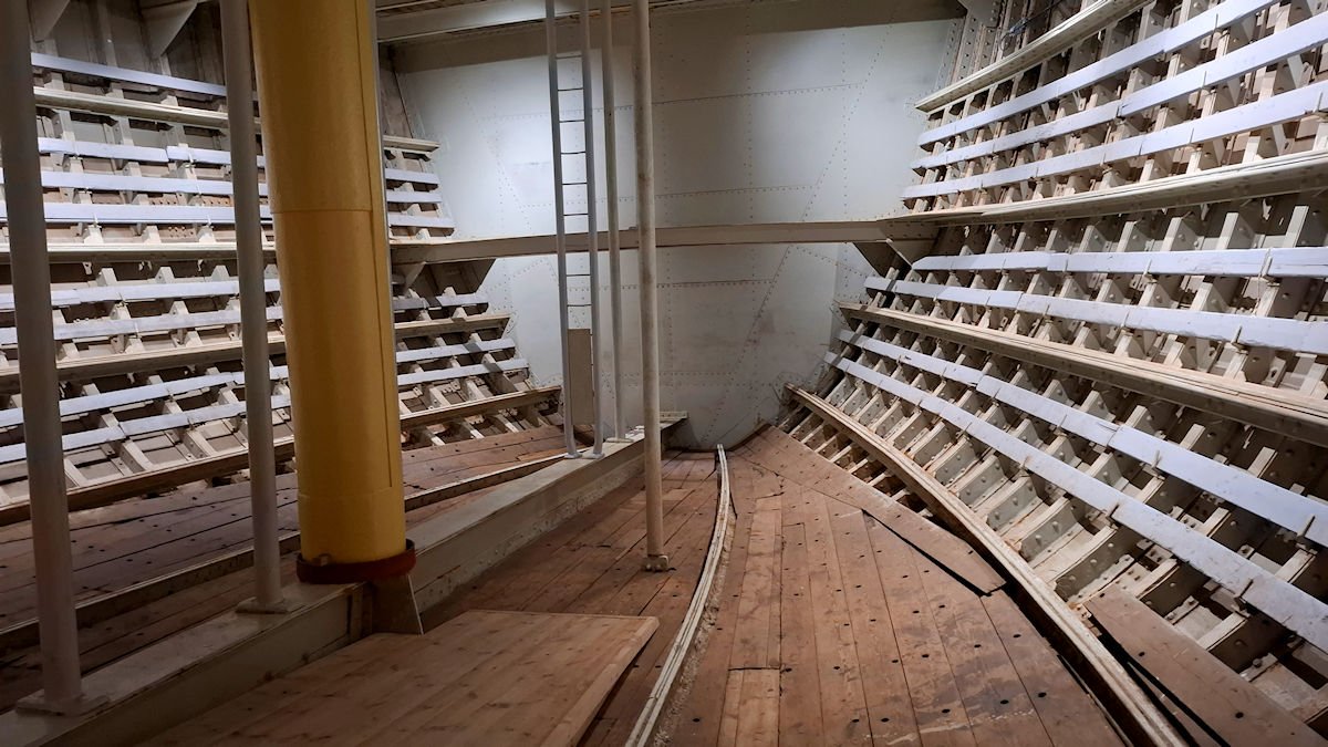 Välikannella oli muonitustiloja, ja siellä suoritettiin kunnostustöitä. Tilassa säilytettiin myös osa vehnälastista, eikä miehistö oleskellut siellä matkan aikana. Alimmaisena on lastiruuma. Sinne ahdattiin vaikkapa vehnäsäkit kuljetettavaksi Australiasta Eurooppaan. Tyhjässä ruumassa huomaa hyvin sen ison koon.
