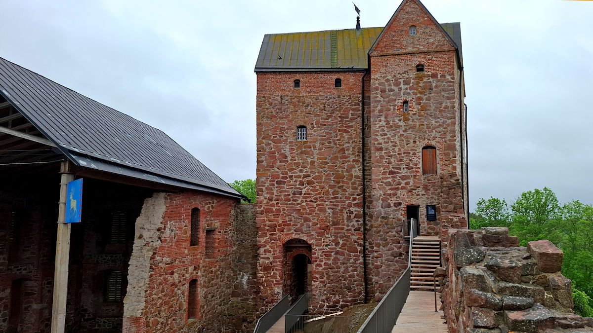 Ensimmäiseksi suunnistimme Kastelholman linnaan. Sinne oli matkaa hotelliltamme vajaat 20 kilometriä. Varauduimme puolen tunnin ajoon. Mikä olikin hyvä sillä päätiellä oli päällystetyöt menossa.