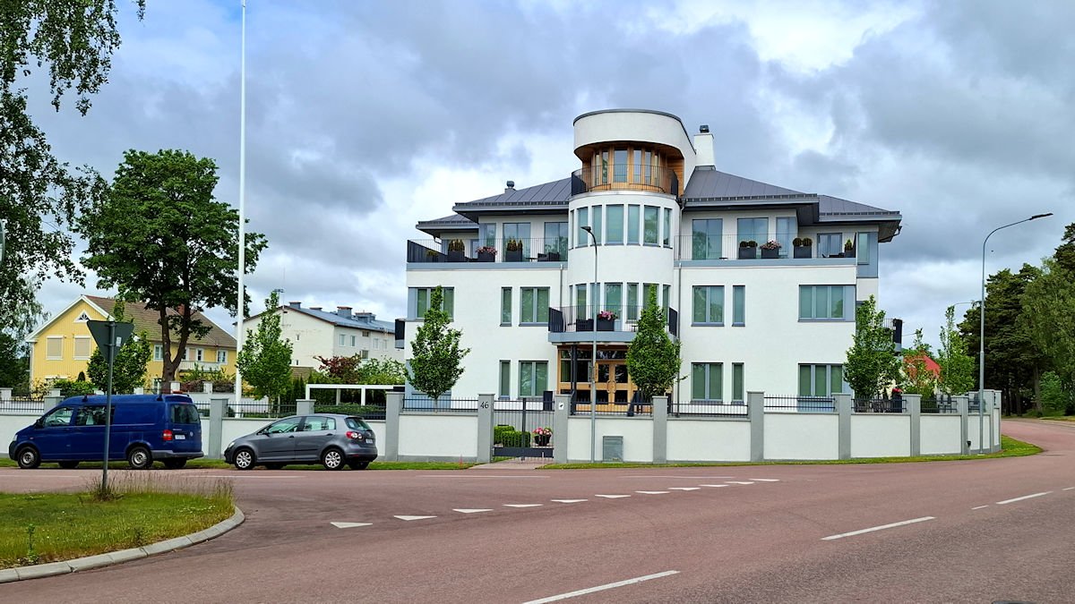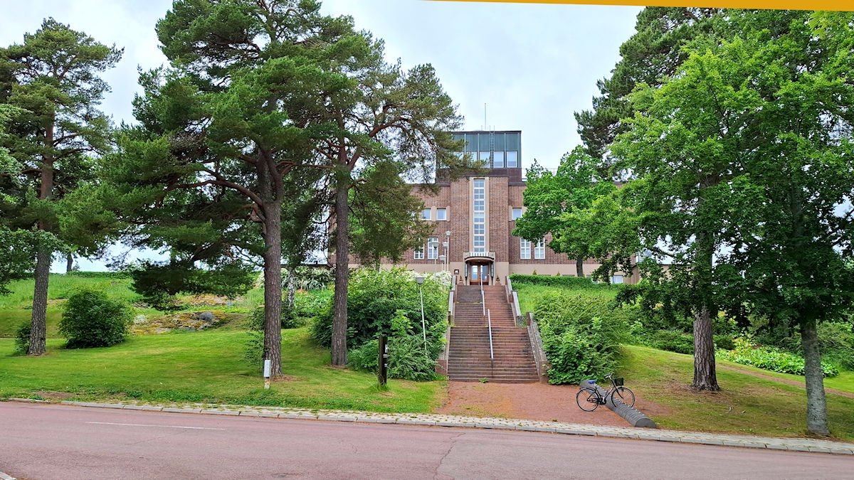 Ensimmäinen pysähdyspaikka oli Merikortteli. Se sijaitsi vajaan kaksi kilometriä hotellistamme. Merikortteli on Maarianhaminan itärannikolla ja hotellistamme käytännössä suoran tien päässä. Välissä oli yksi liikenneympyrä.