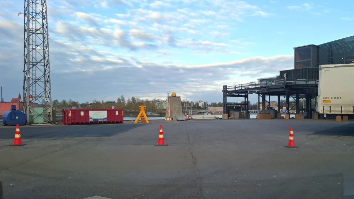 15 kilometrin matka Helsingin Katajanokan satamaan kesti noin 20 minuuttia. Liikenne oli ennen seitsemää todella hiljainen. Olimme varautuneet hieman vilkkaampaan liikenteeseen varsinkin Mäkelänkadulla, mutta ruuhkista ei ollut tietoakaan. Ilmeisesti Pasilan läpikin olisi suoriutunut matka yhtä nopeasti.
