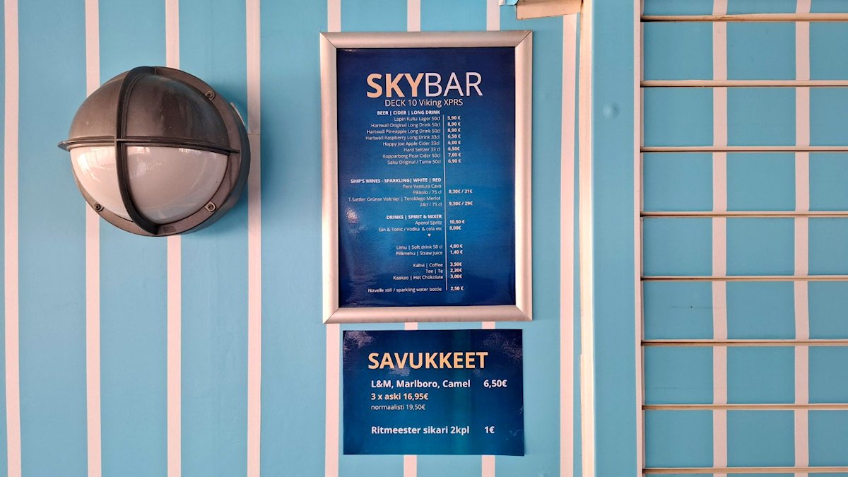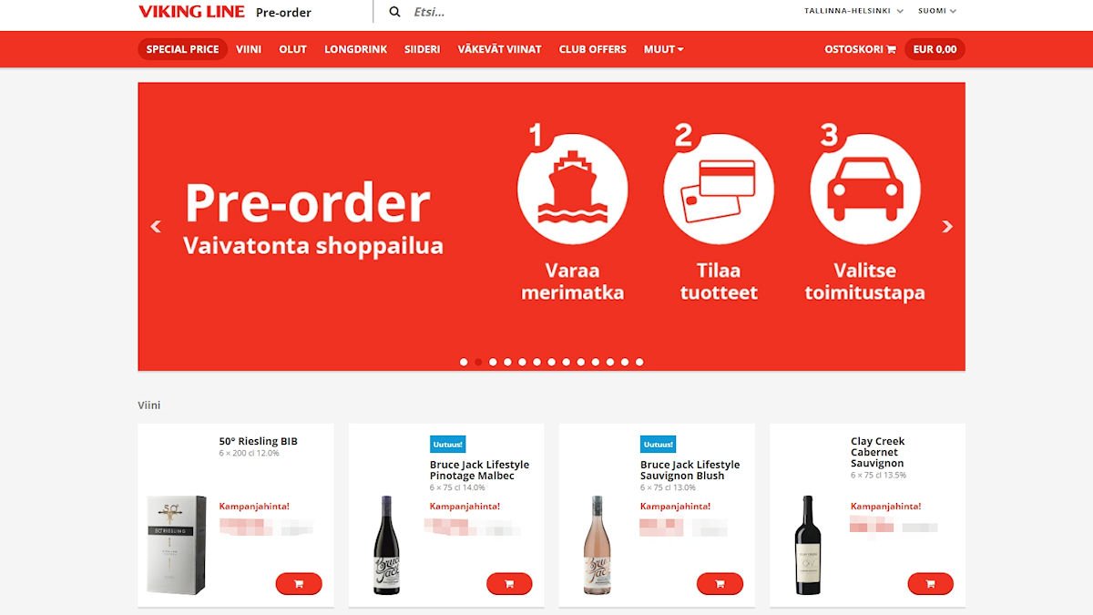 Matkapäivää edellisenä aamuna teimme pre-order tilauksen. Siihen pakolliset eli kevään juhliin menevät tuotteet. Tarkoitus oli ostaa myös hieman extraa, mutta pre-orderissa ostoskorissa ei ollut special-hintoja näkyvissä vaikka ne pyörivät bannerissa. Emme siis uskaltaneet ostaa kuohuvia emmekä pulloviinejä etukäteen vaan päätimme ostaa ne laivan myymälän tarjouksesta. Koska ennen kassalle menoa piti antaa matkan vahvistuskoodi, niin ajattelimme oikeiden hintojen tulevan vasta maksuvaiheessa. Eipä tullut eli maksoimme noin 5% korkeamman hinnan koko potista.