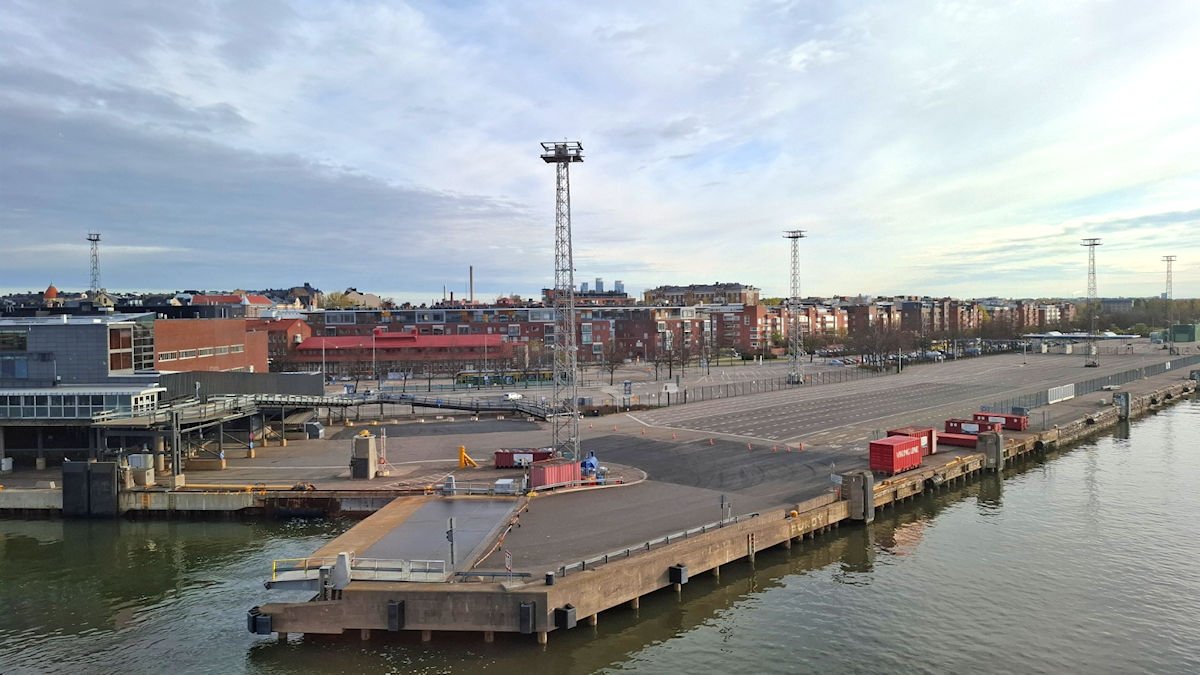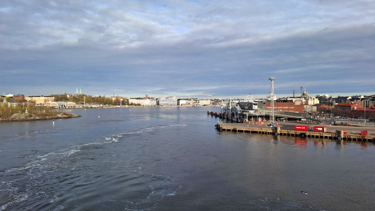 15 kilometrin matka Helsingin Katajanokan satamaan kesti noin 20 minuuttia. Liikenne oli ennen seitsemää todella hiljainen. Olimme varautuneet hieman vilkkaampaan liikenteeseen varsinkin Mäkelänkadulla, mutta ruuhkista ei ollut tietoakaan. Ilmeisesti Pasilan läpikin olisi suoriutunut matka yhtä nopeasti.