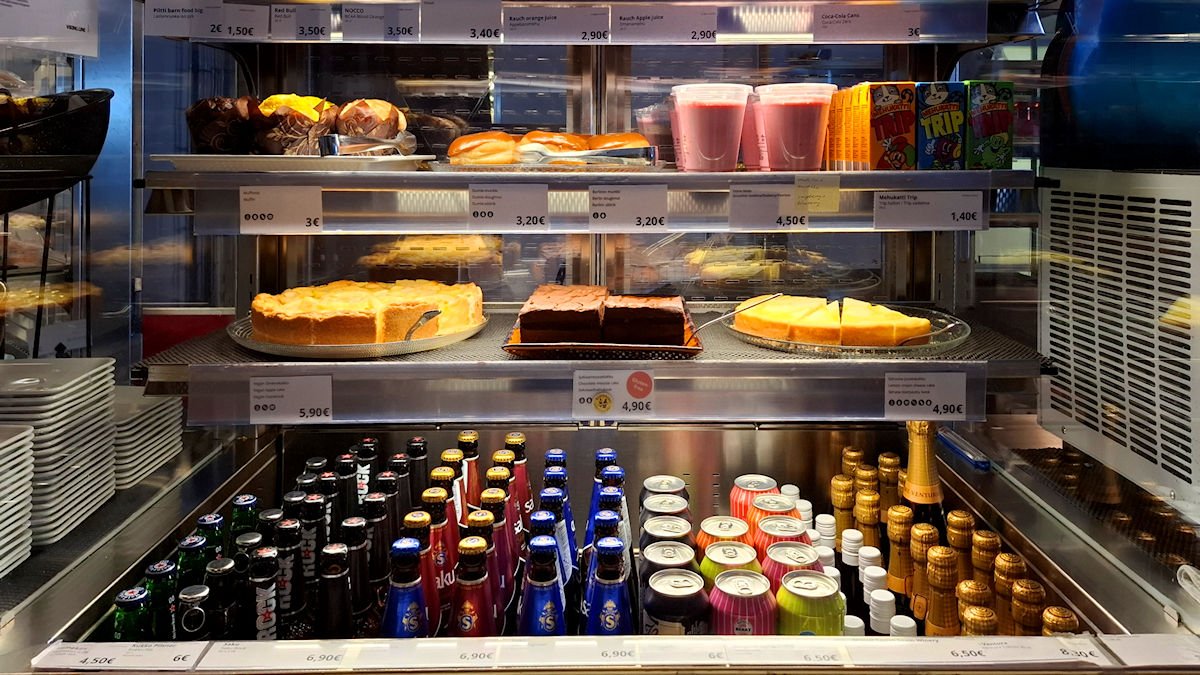 Matkapäivää edellisenä aamuna teimme pre-order tilauksen. Siihen pakolliset eli kevään juhliin menevät tuotteet. Tarkoitus oli ostaa myös hieman extraa, mutta pre-orderissa ostoskorissa ei ollut special-hintoja näkyvissä vaikka ne pyörivät bannerissa. Emme siis uskaltaneet ostaa kuohuvia emmekä pulloviinejä etukäteen vaan päätimme ostaa ne laivan myymälän tarjouksesta. Koska ennen kassalle menoa piti antaa matkan vahvistuskoodi, niin ajattelimme oikeiden hintojen tulevan vasta maksuvaiheessa. Eipä tullut eli maksoimme noin 5% korkeamman hinnan koko potista.