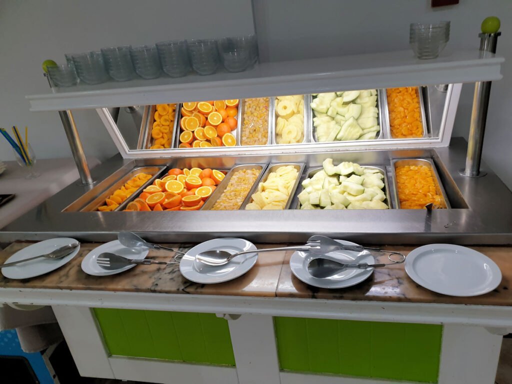 Aamulla lonkassa ja selässä tuntui pitkä istuminen koneessa ja kävely. Sisäinen kello oli vielä Suomen ajassa ja nousin klo 5 paikallista aikaa. Jouduin siis odottelemaan aamupalalle lähtöä, sillä se katetaan vasta klo 7 lähtien. Aamupala oli katettu ravintolaan ja yllätti positiivisesti runsaudellaan.