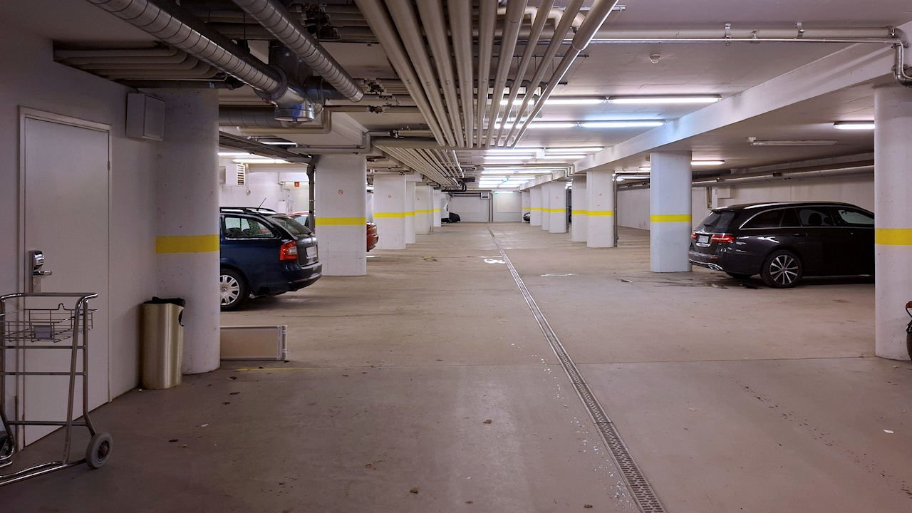 Avainkortti käy myös lomakiinteistön autotalliin, mikä näin talvella on iso etu. Kesälläkin on varmasti mukava, että voi kuljettaa matkatavarat muutamalla askeleella hissille.