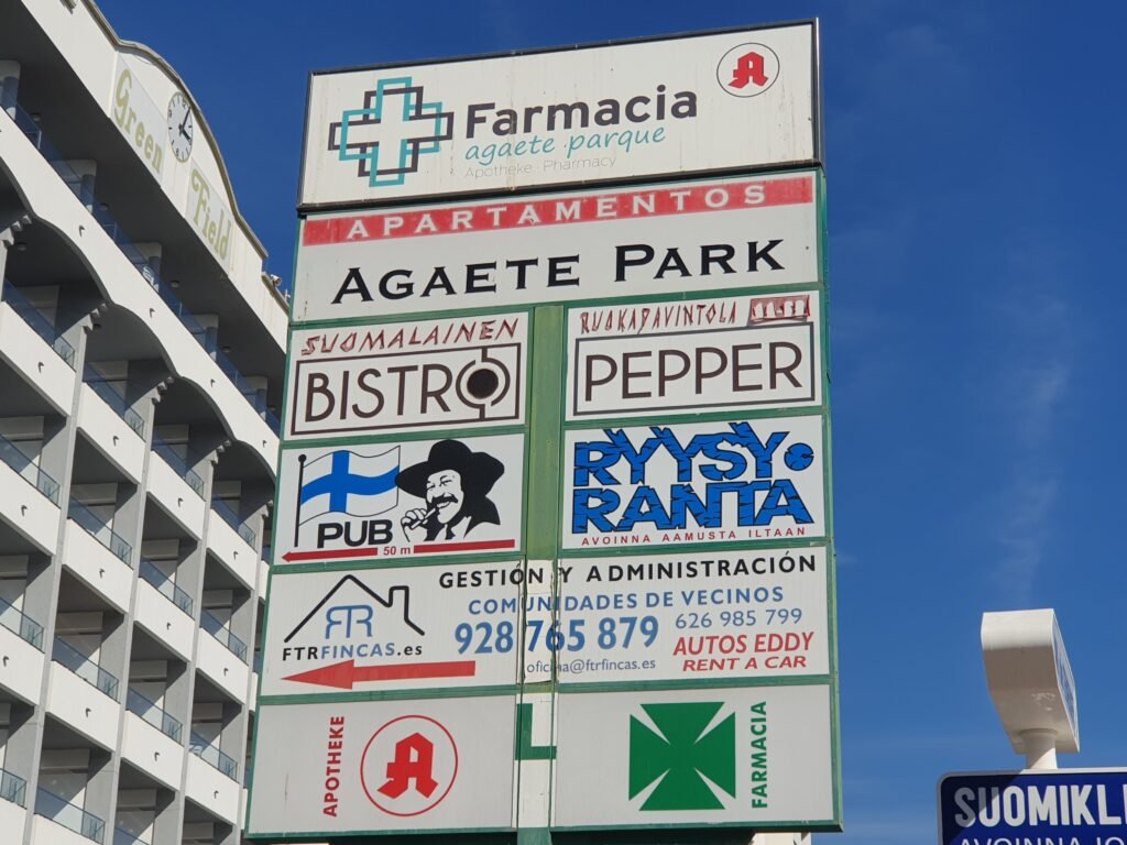 Kuljin pitkin avenida de Tenerifeä pitkin. Matkan varrella on mm. suomalaisia ravintoloita kylttien mukaan. Täytyy jossain vaiheessa käydä tutustumassa ainakin Bistron valikoimaan.