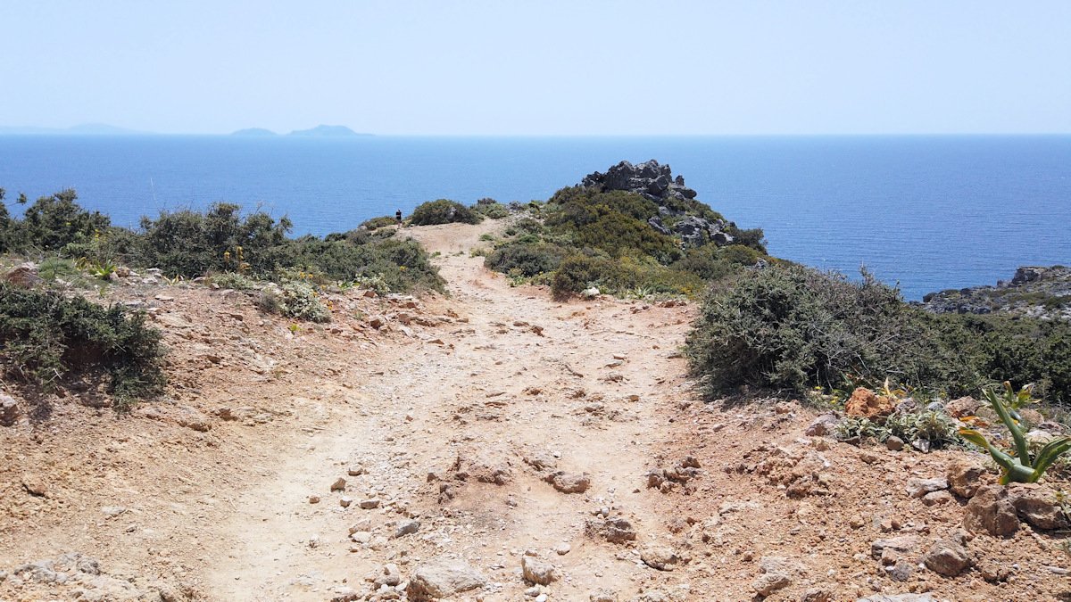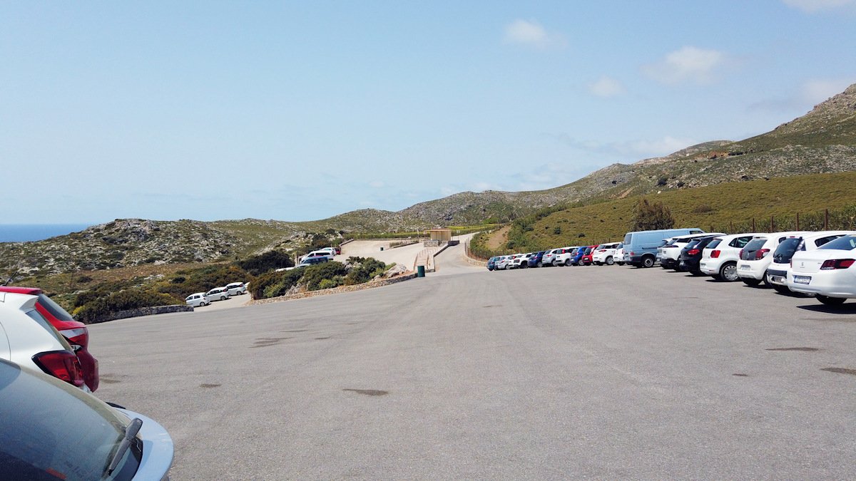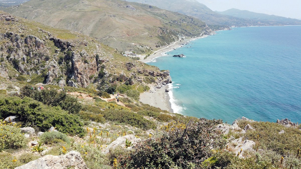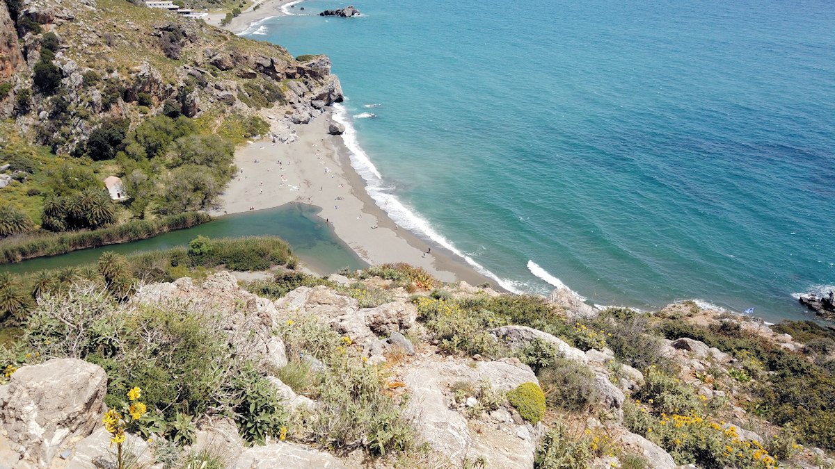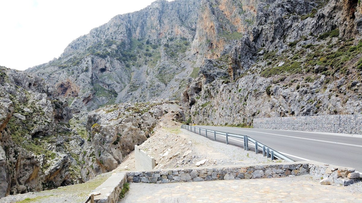 Aika pian rotkon jälkeen on Asomatosin kylä. Kylän jälkeen vajaan kilometrin päässä tulee kyltti, jossa suoraan ohjataan Plakiakseen ja vasemmalle Prevelin luostariin. Käännytään luostariin päin. Tietä ajetaan alas jonkun matkaa, kunnes tulee kyltti “Gefyra Taverna Cafe”. Tässä kohtaa on pieni valinnan paikka. Haluaako mennä perinteistä reittiä eli laskeutua 500 – 10000 rappusta alas vai saman kävelymatkan, mutta vähemmällä reisijumpalla hieman tasaisemmalla. Itse valitsin rappuset. Ihan kuvauksellisten maisemien takia. Toista reittiä pitkin ei saa korkealta otettuja kuvia palmumetsästä ja rannasta.