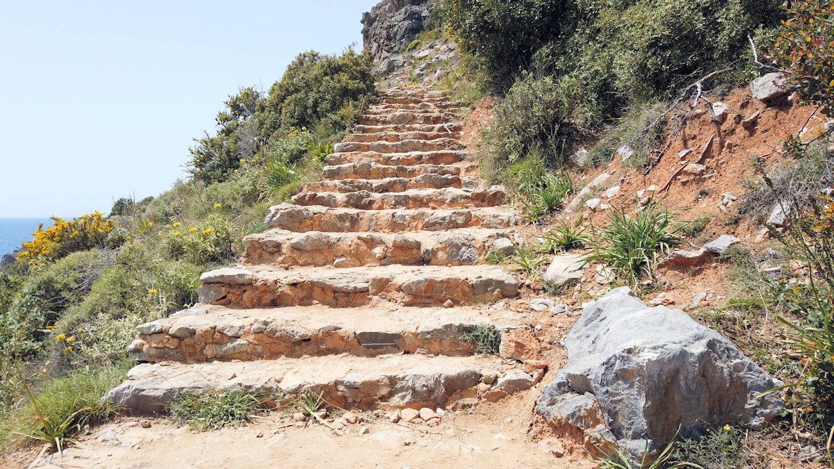 Edessä oli kiipeäminen takaisin parkkipaikalle. En laskenut portaita. Mutta kyllä veti reidet hapoille. Ei nyt kramppeja sentään, mutta suosittelen porrasharjoittelua etukäteen kaikille Kreetan kävijöille. Itsekin piti pysähtyä “kuvaamaan” kohtuullisen usein. Kun reidet ei pelaa, niin meinaa ylämäkeen kompuroida. Ja se ei ole terveellistä jyrkässä maastossa. Kreetallahan mäkiä ja portaita riittää.