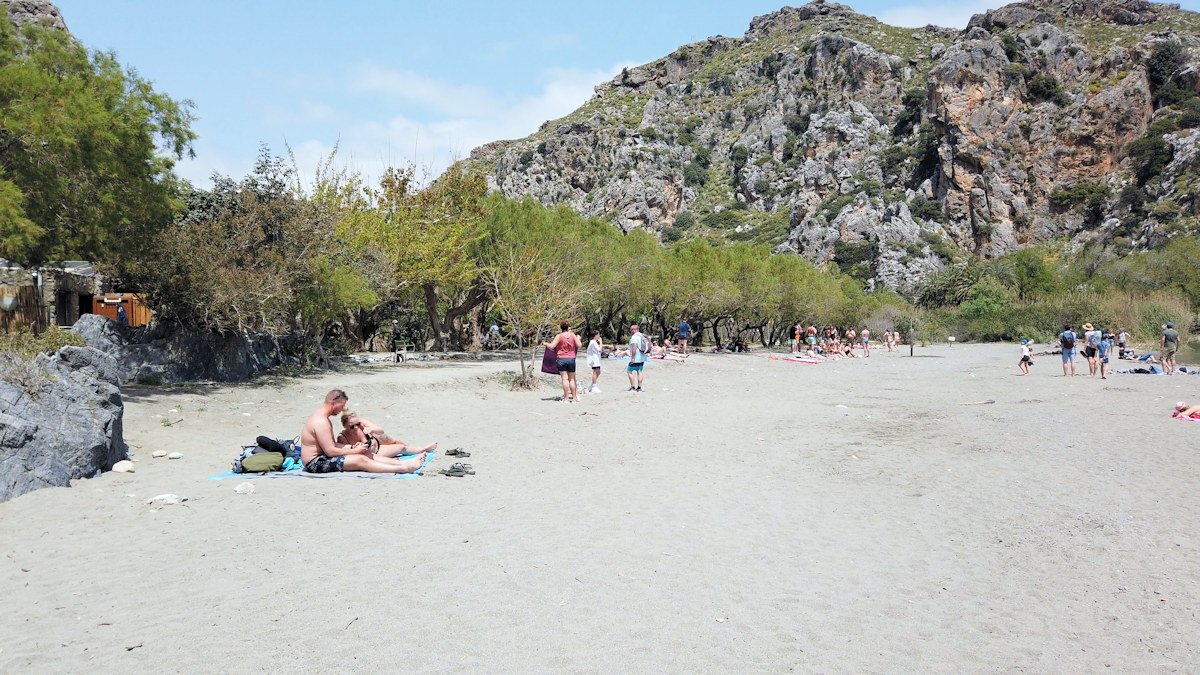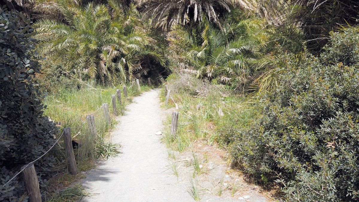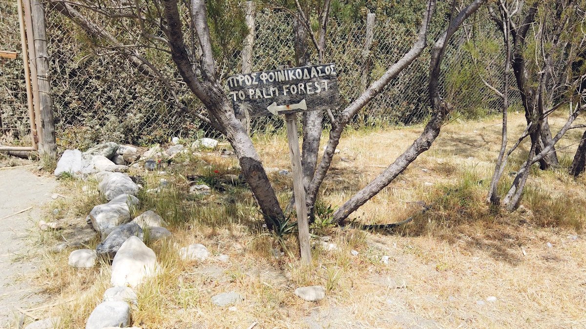 Eli mikäli haluaa hieman kevyemmän liikunta-annoksen niin täytyy kääntyä kahvilan suuntaan ja kiertää satoja vuosia vanhan oliivipuumetsän kautta Dionysosin rannalle. Sieltä johtaa polku palmurannalle ja Holy Savvasin kappelille. Silloin joutuu kahlaamaan joen poikki, jos haluaa vaeltaa palmumetsään. Toki vettä on vain polviin saakka. Dionysosin rannalla on parikin tavernaa, minimarket ja huoneita vuokrattavana.
