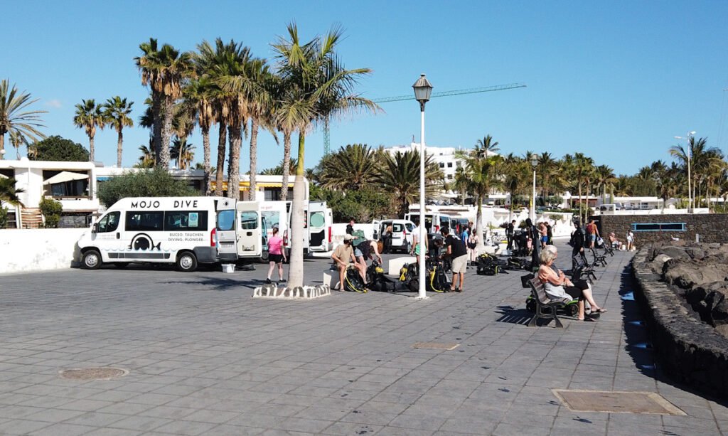 Keskusta-alue vaikutti aika hiljaiselta. Toki ajoneuvoliikennettä on kohtalaisesti, mutta liikkeiden ovet eivät käyneet eikä ihmisiä ollut kovinkaan paljon liikkeellä. Liekö tavallinen keskipäivä Puerto del Carmenissa. Moni paikallinen viettää siestaa, jos ei ole turismiin liittyvissä tehtävissä. Tosin esimerkiksi autovuokraamot ovat kiinni siestan ajan, vaikka suurin osa asiakkaista ei sitä vietä.