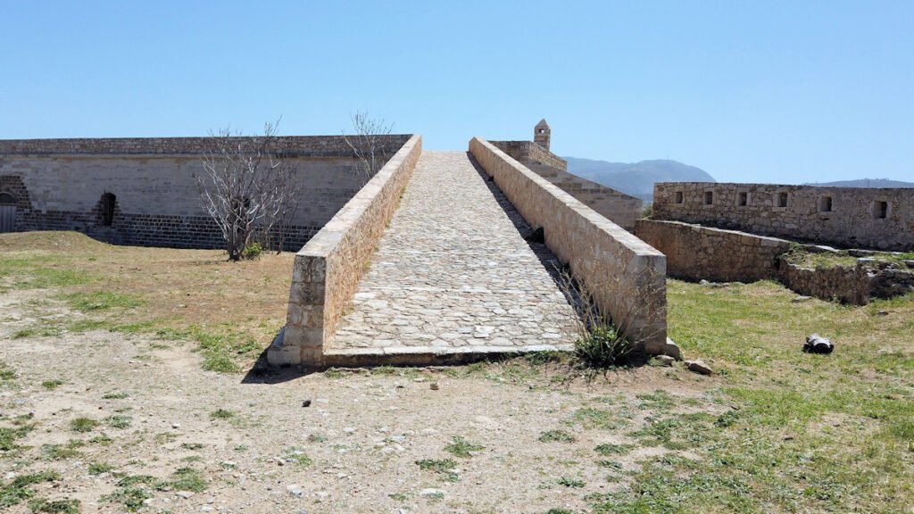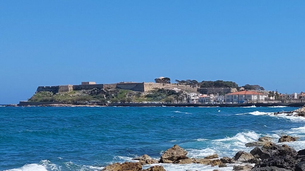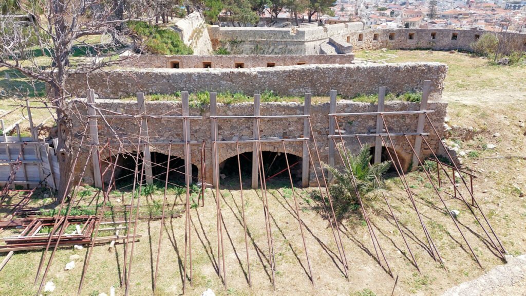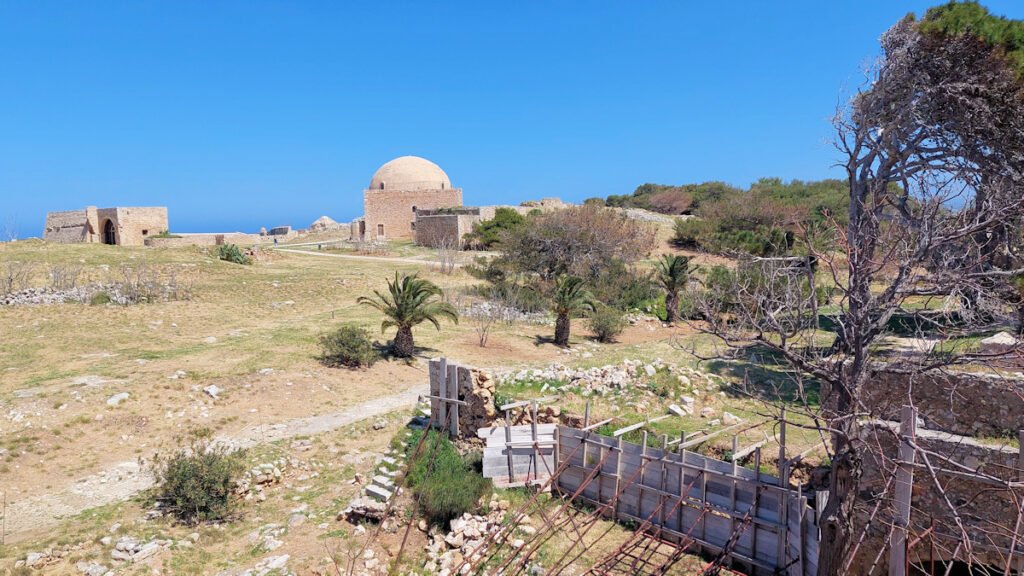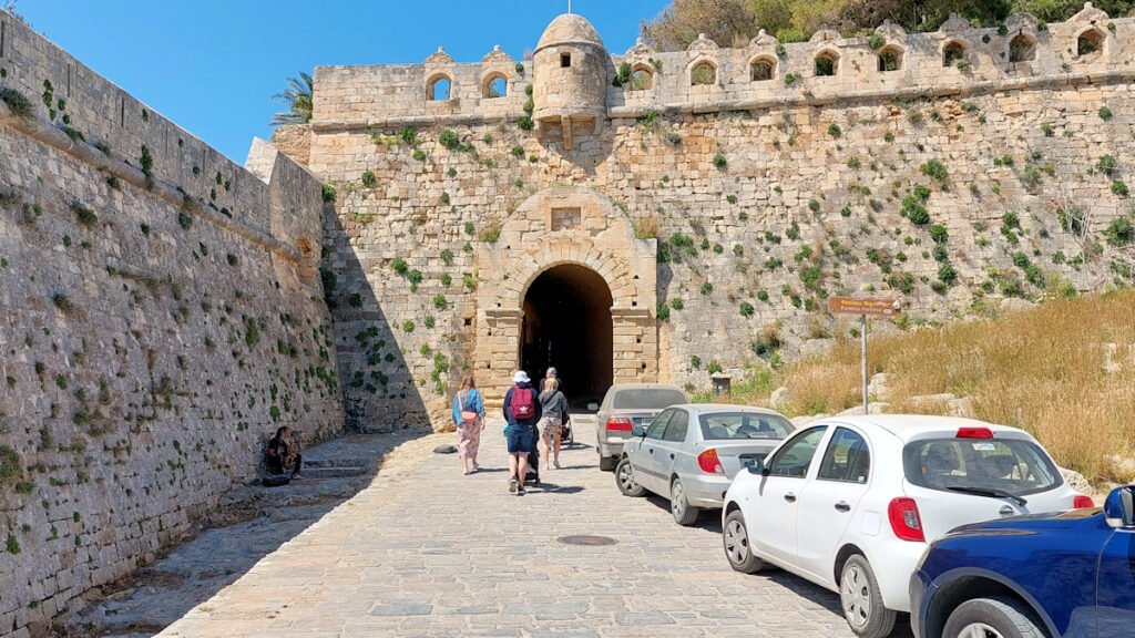 Autoja on paljon ja virallisia parkkeja vähän, joten vähänkin myöhemmin aamulla tullessa ei usein jää muuta vaihtoehtoa kuin pysäköidä tien varteen. Yleensä tuurilla löytyy pysäköintimahdollisuus kohtuu matkan päästä. Ensimmäinen kohteeni on Fortezzan linnoitus. Rethymnon ehkä kuuluisin nähtävyys.