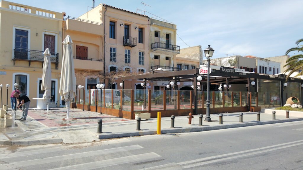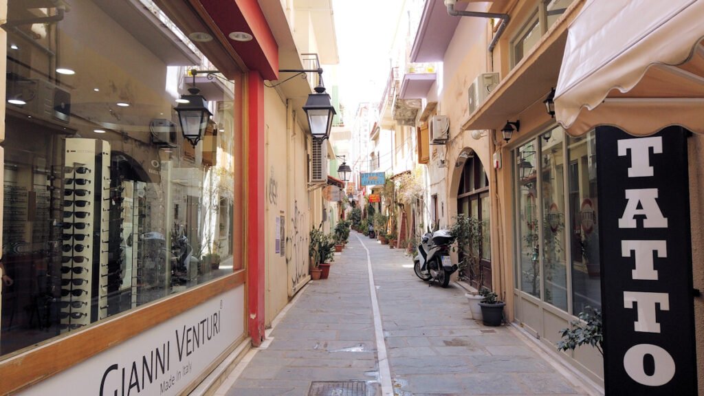 Muuten kaupungin keskusta on kuin Iraklionin tai Hanian keskusta. Pääasiassa asuntoja ja asukkaiden tarvitsemia palveluja. Toki sataman ostoskadun ulkopuolelta saa tarvikkeita ja ruokaa halvemalla, mikäli tarvitsee.