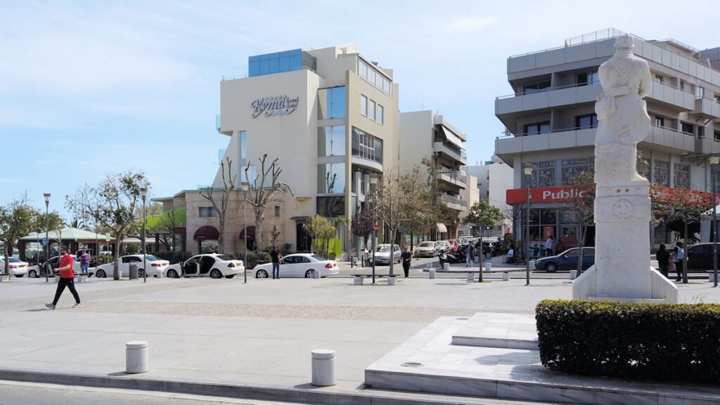 Varsinainen ostosalue alkaa Kyma -hotellin vieressä olevan tuntemattoman sotilaan aukion jälkeen. Ainakin aukiolla on tuntematon sotilas. Aukion nimeä en ole löytänyt mistään.