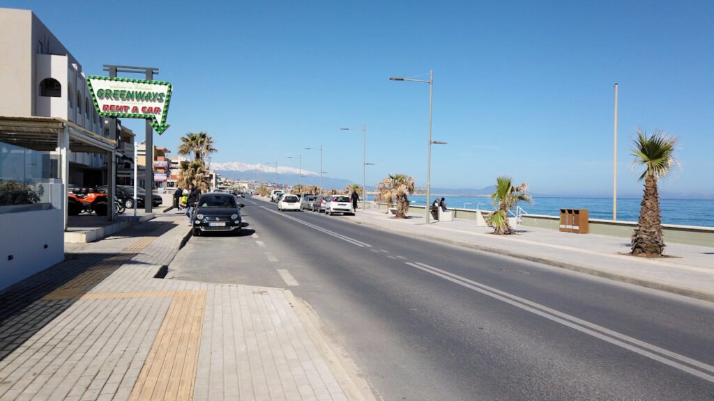 Ajoin ensimmäisestä liittymästä alas kohti Rethymnon lnja-autoasemaa ja hieman siitä ohi, niin sain sopivasti auton tienvarteen parkkiin.